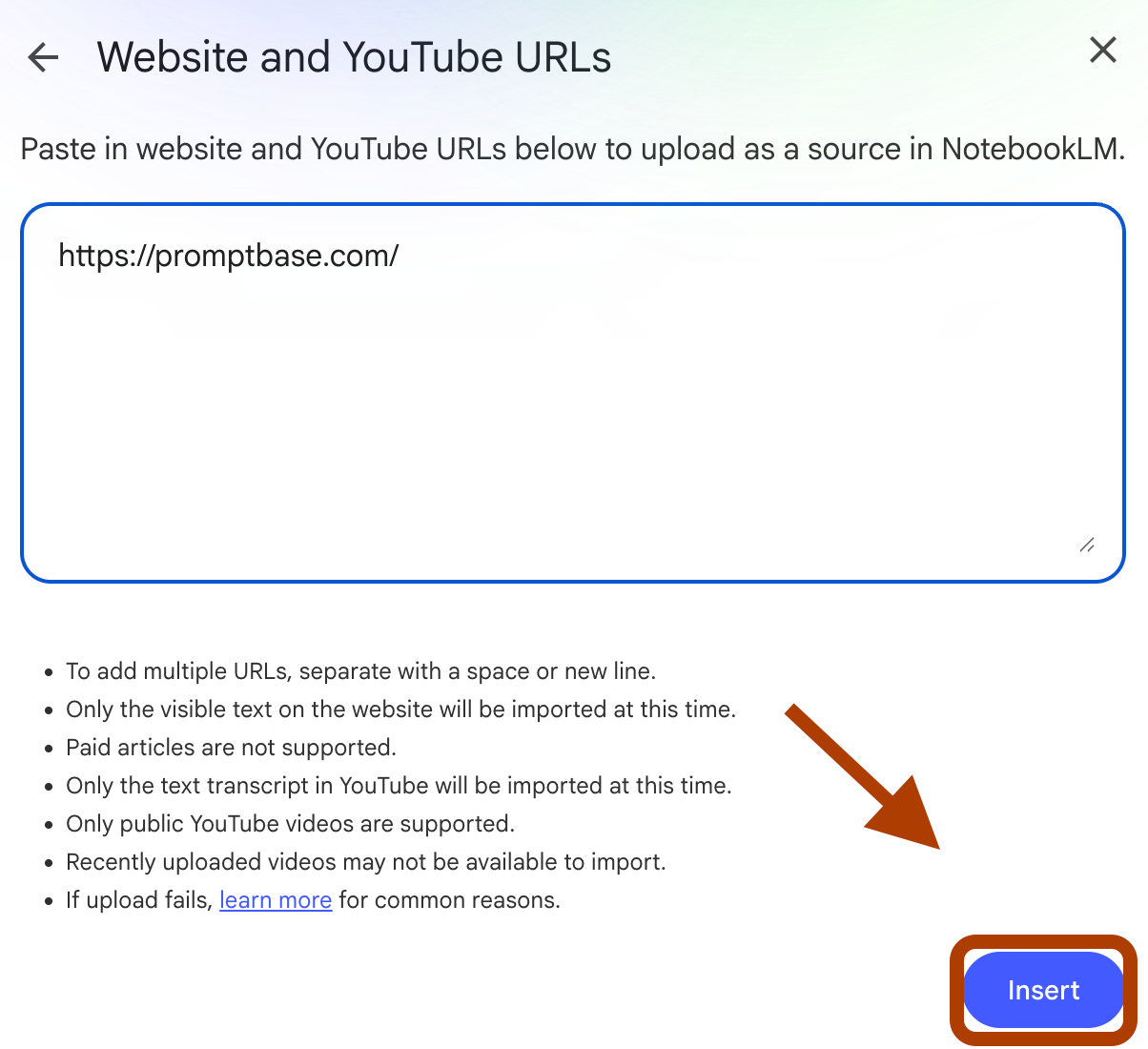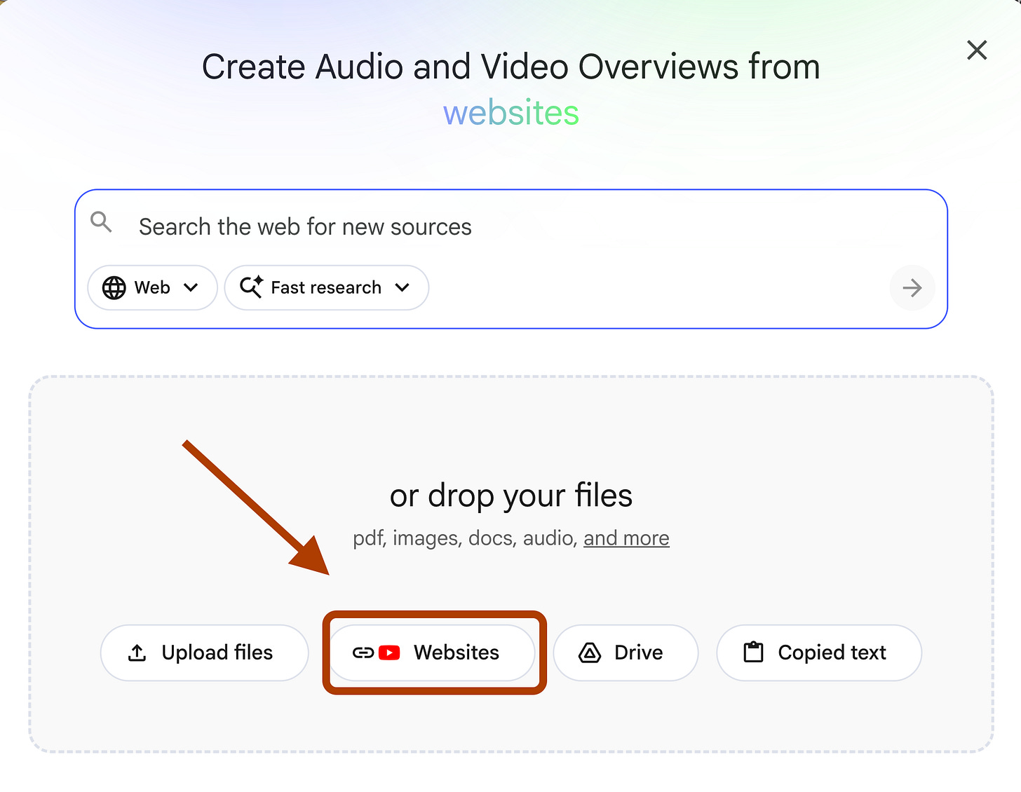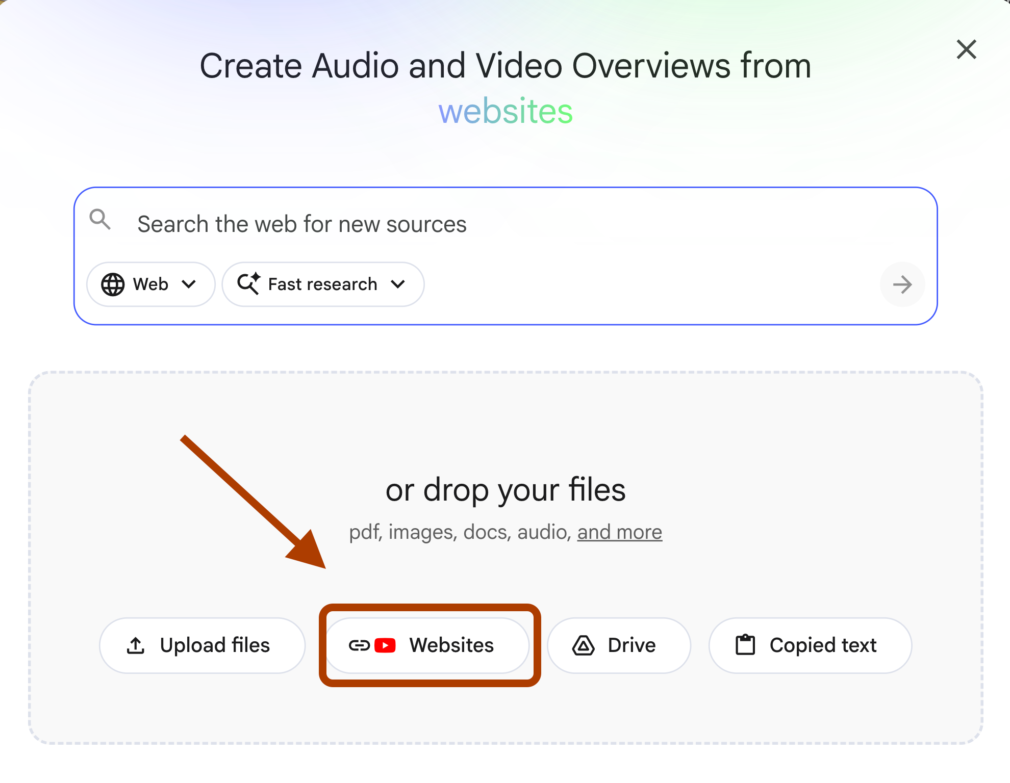 Upload your study material to a fresh NotebookLM notebook. Click “Add source” → Upload files. For this demo, drop in: