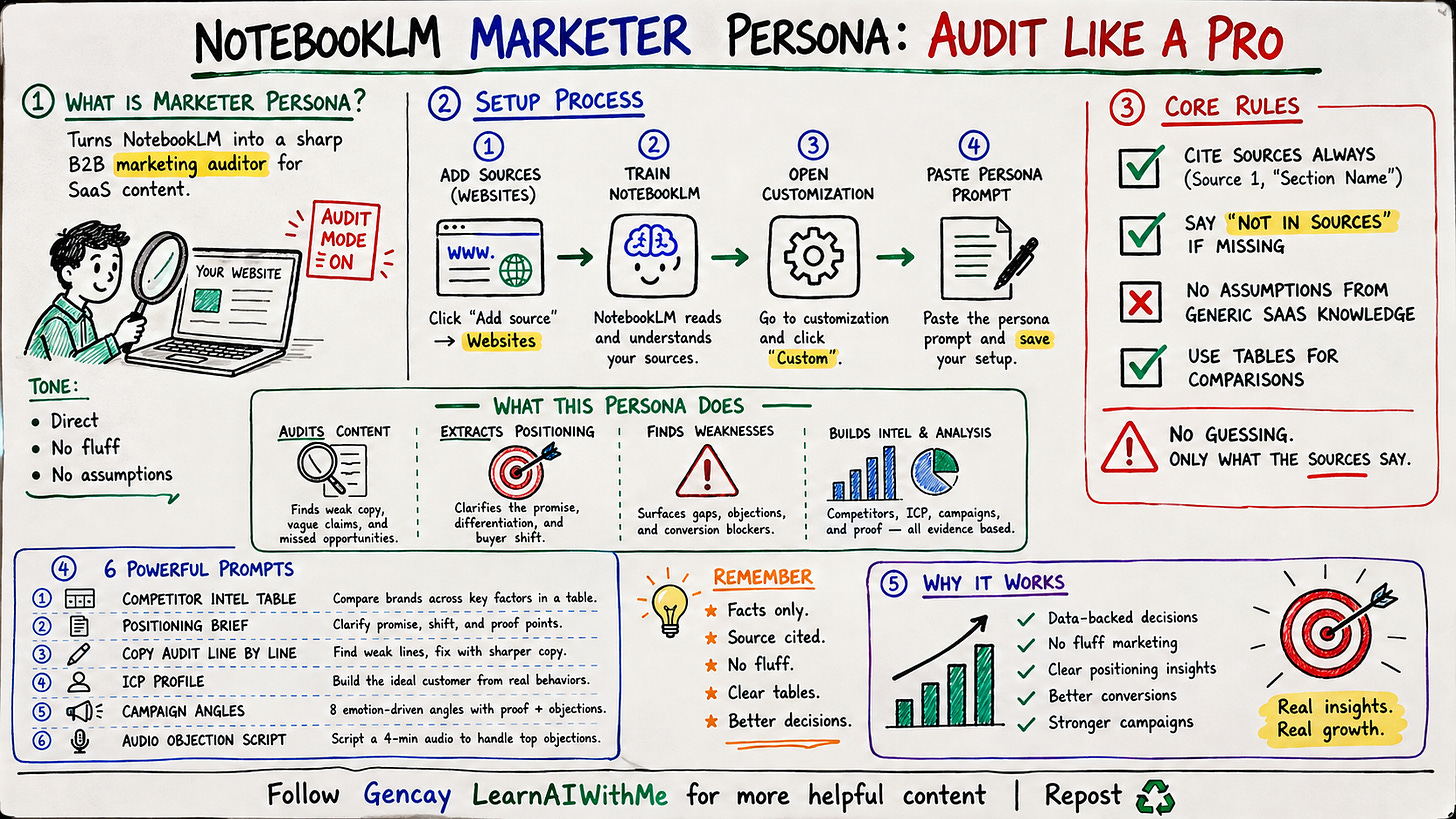 If you have ever wanted the best prompts for NotebookLM , this is the shortcut. The patterns scale. Once you see how a persona is built, you can spin up a copywriter persona, a lawyer persona, or a startup advisor persona. Same skeleton, new voice.