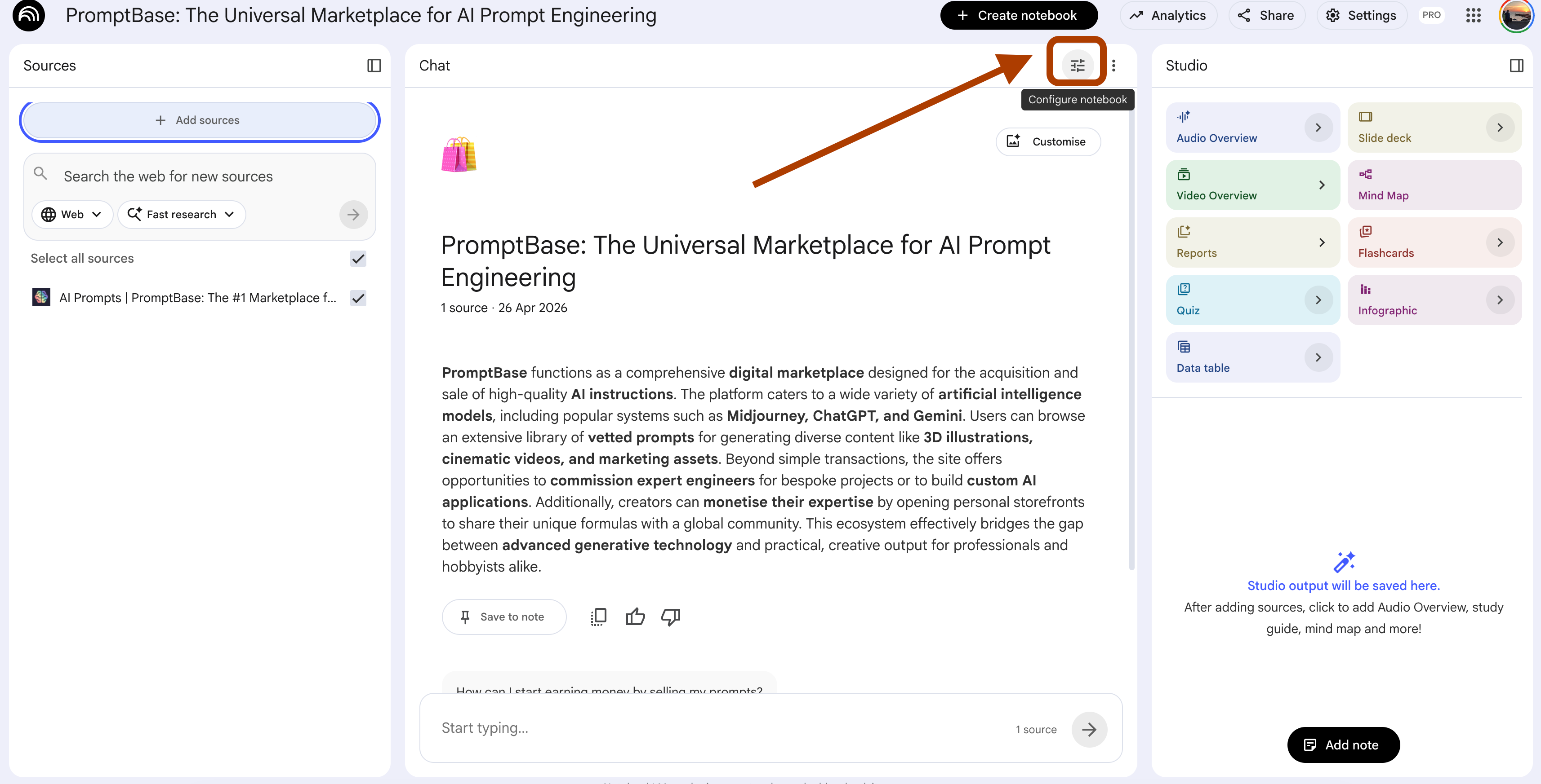 I'll use the same NotebookLM, just trained on academic papers about prompting.
