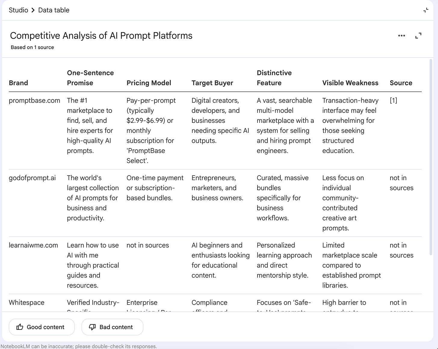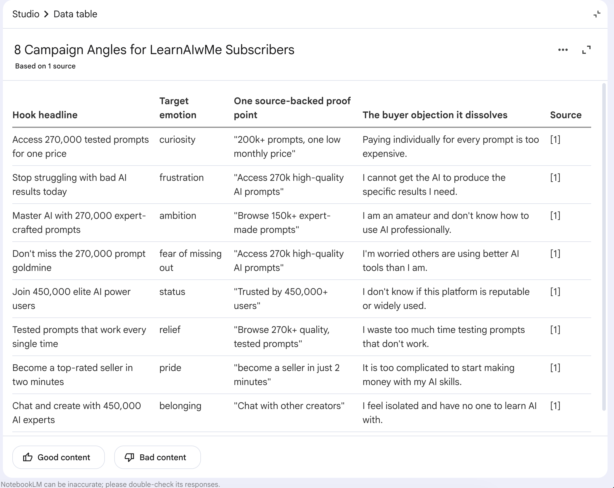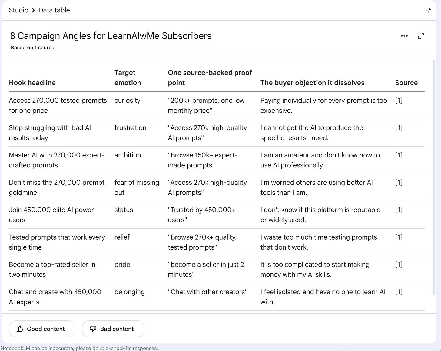 Steal the setup prompt as-is. Run two or three working prompts. See what NotebookLM gives back.