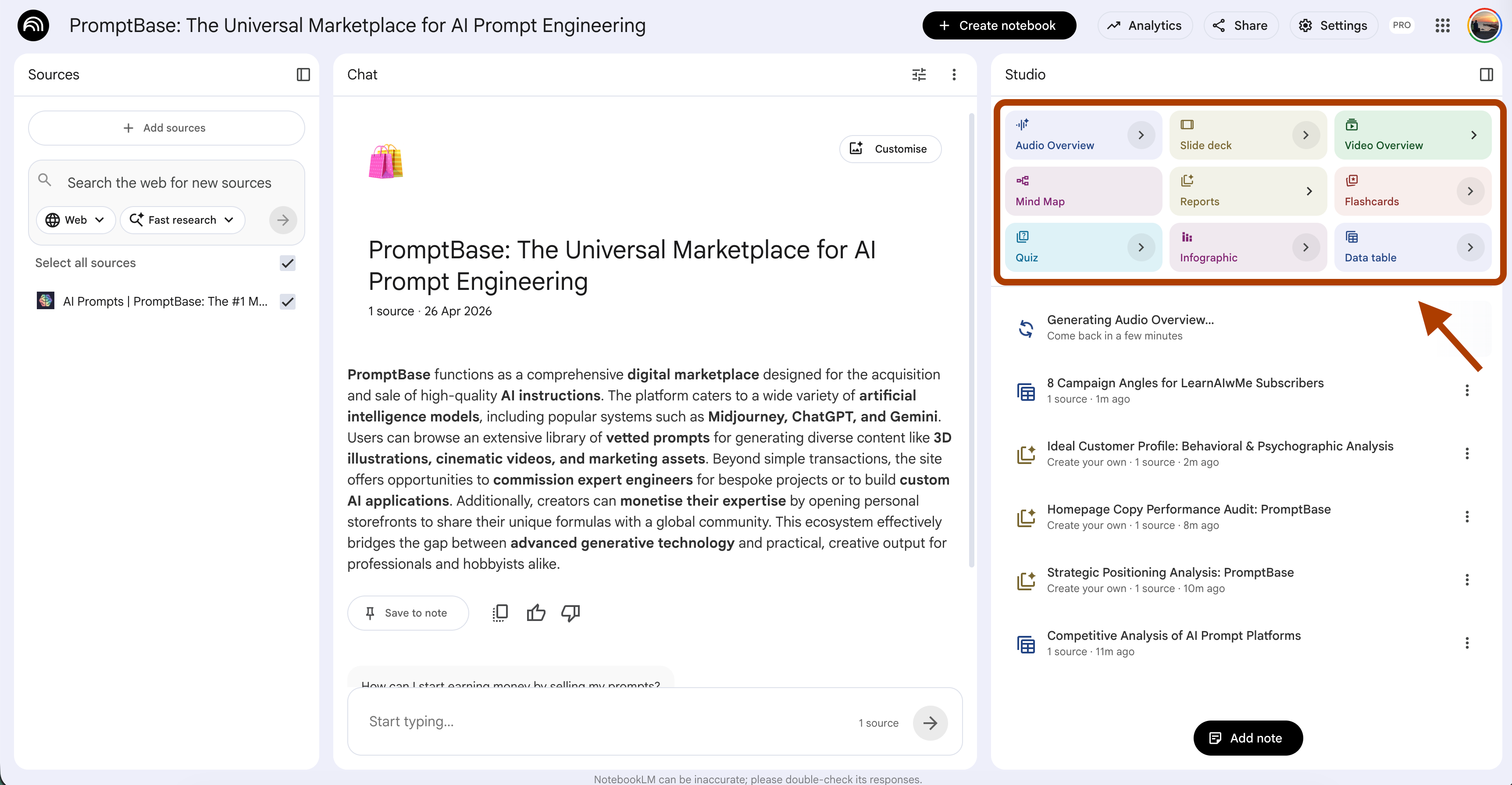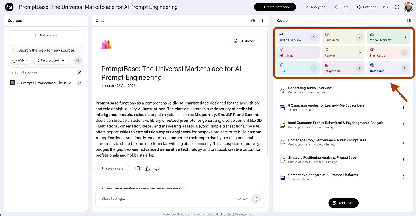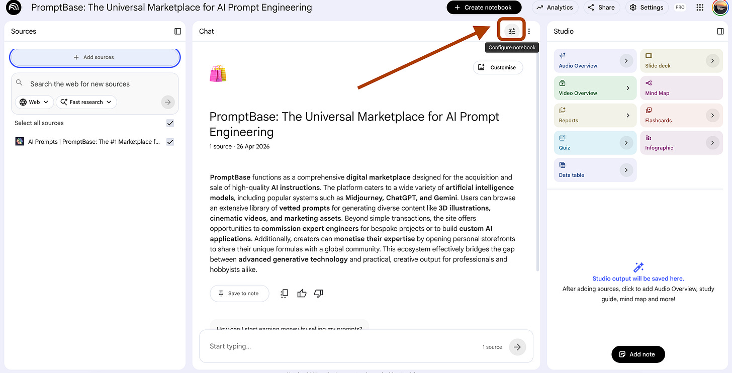 Steal the setup prompt as-is. Run two or three working prompts. See what NotebookLM gives back.