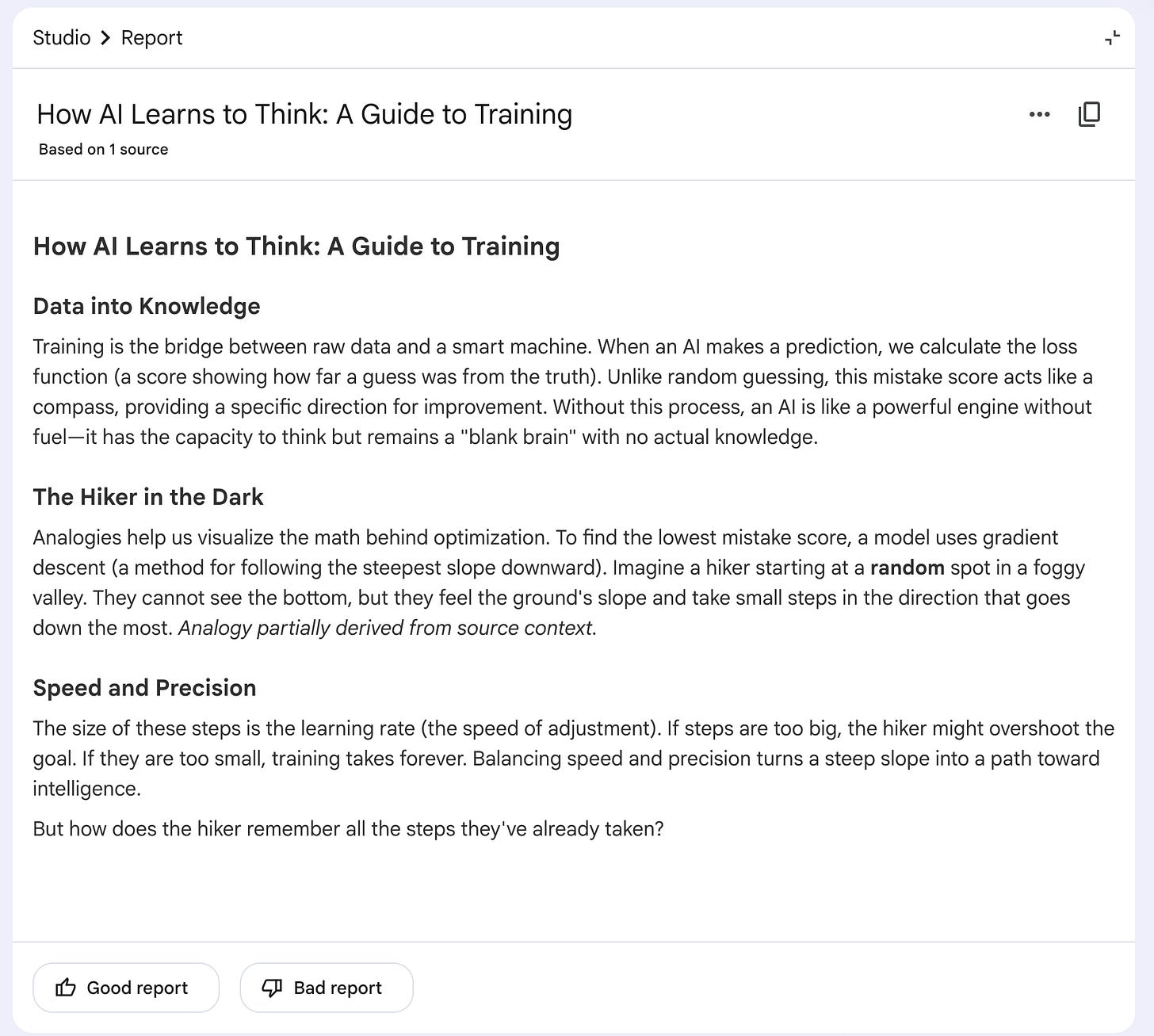 (I selected Chain-of-Thought for each topic on purpose. If you understand it even a little, just seeing it shows the power of NotebookLM.)
