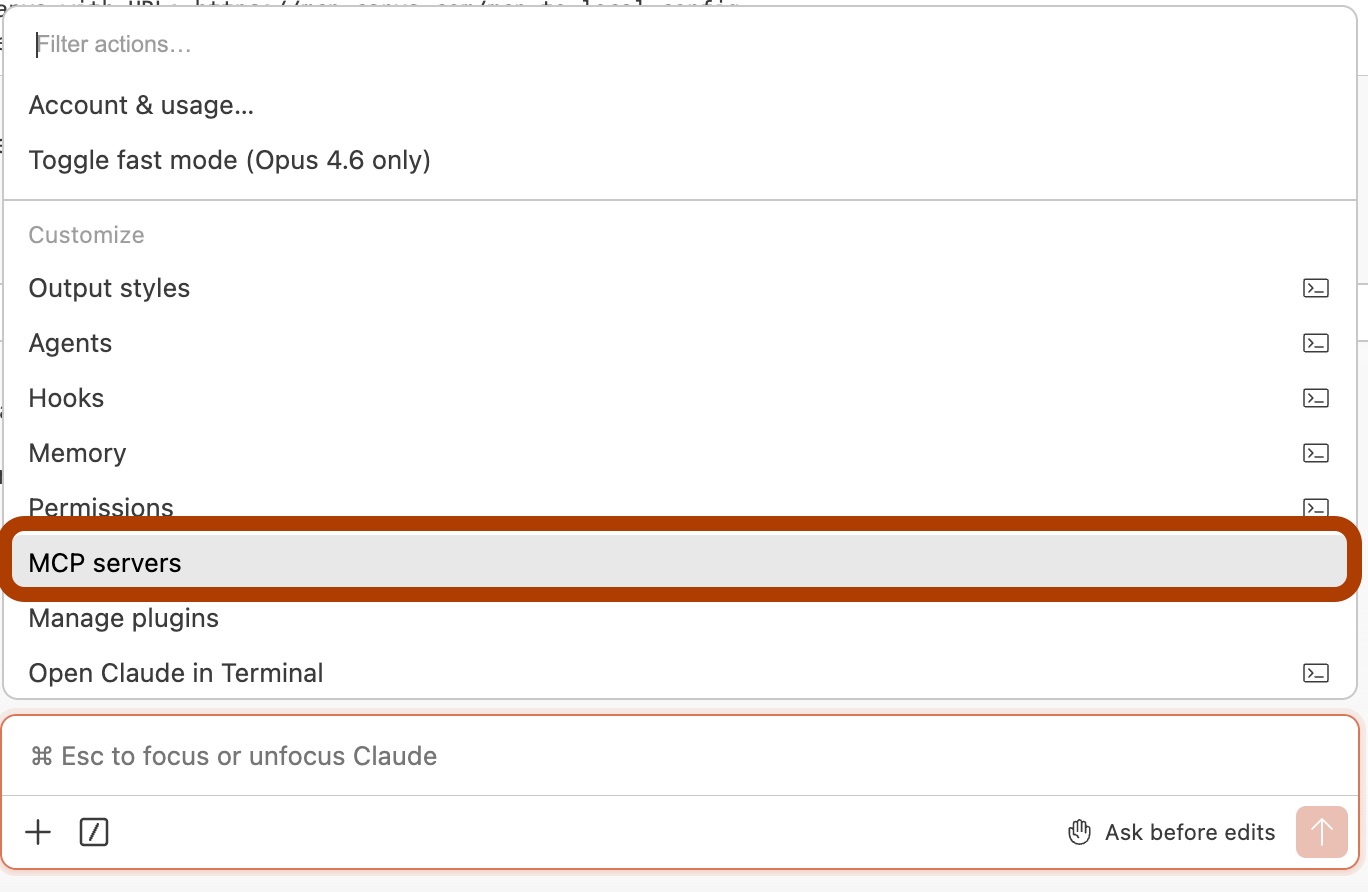 Then click the “/” button and click on “MCP Servers”.