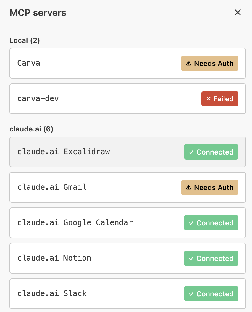 All installed MCP servers appear in one place.