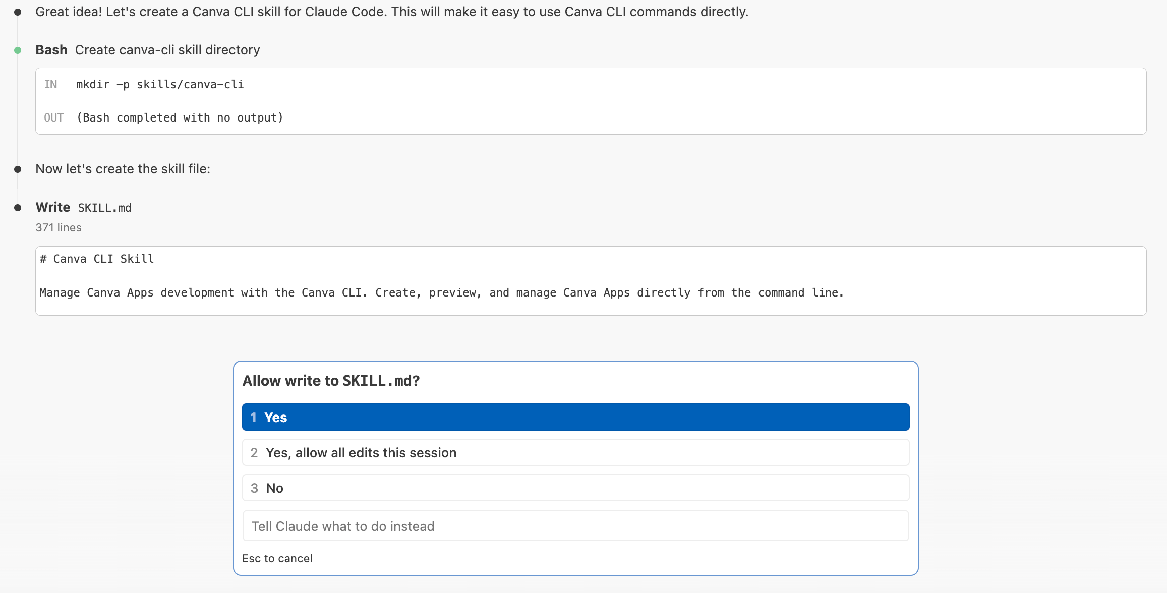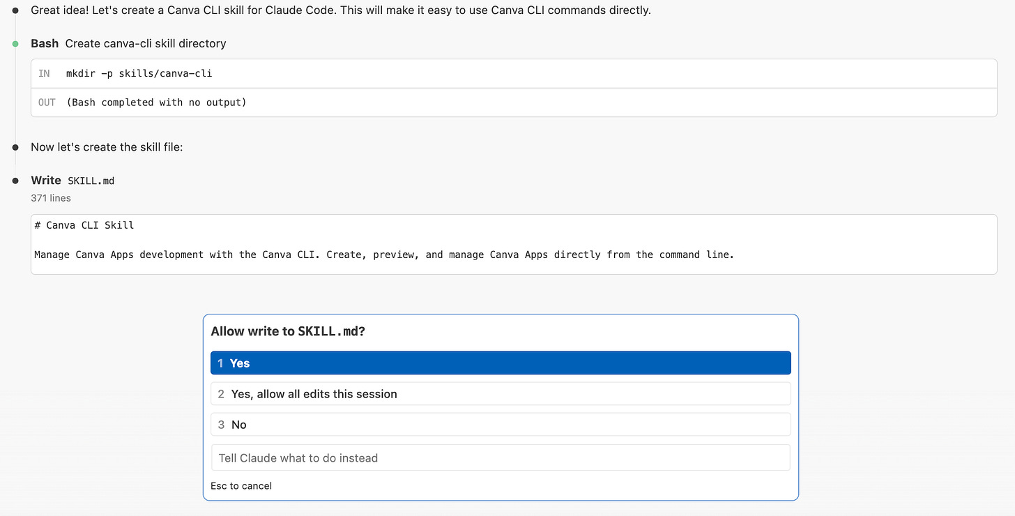 lets turn this Canva CLI as a canvas skillHere how it looks like.