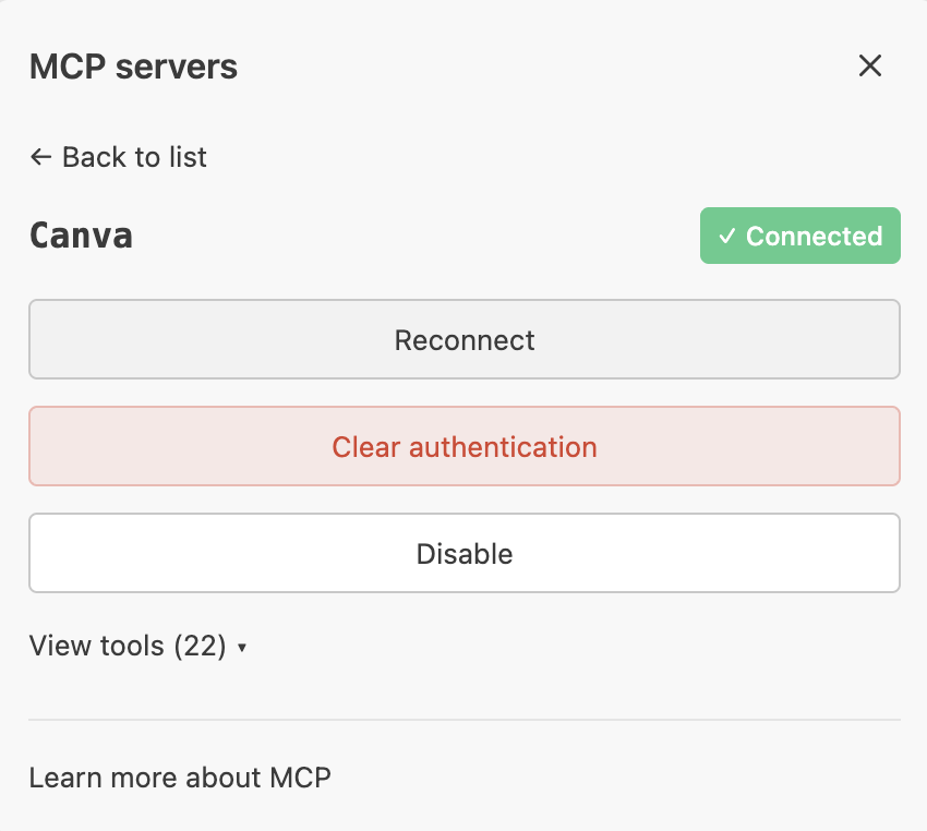 Here is the link : https://www.canva.dev/docs/apps/mcp-server/The settings are done now.