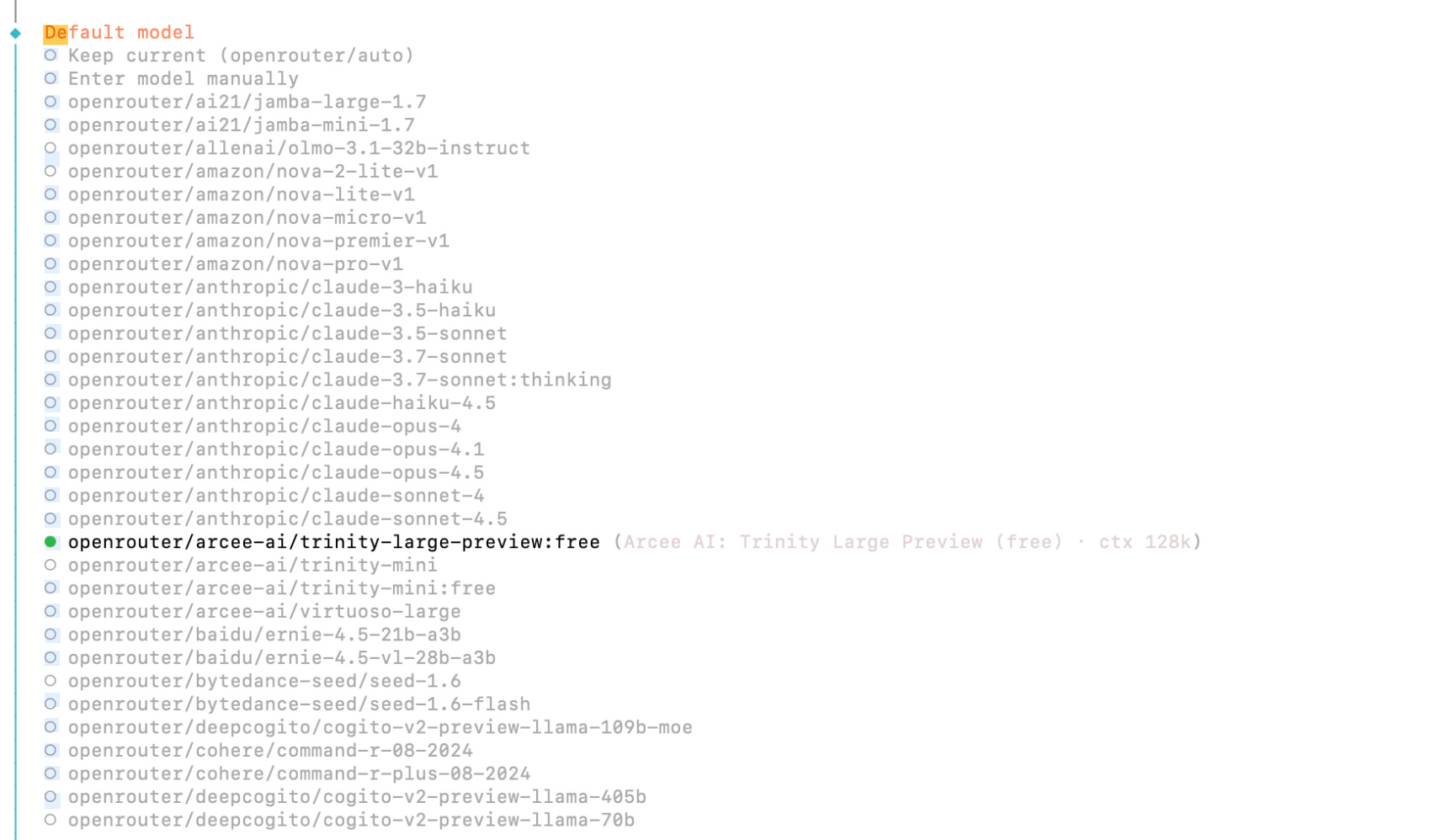 Model provider: I picked OpenAI Codex (OAuth). You can go to Openrouter, create a free account, and choose your API key to use it for free.