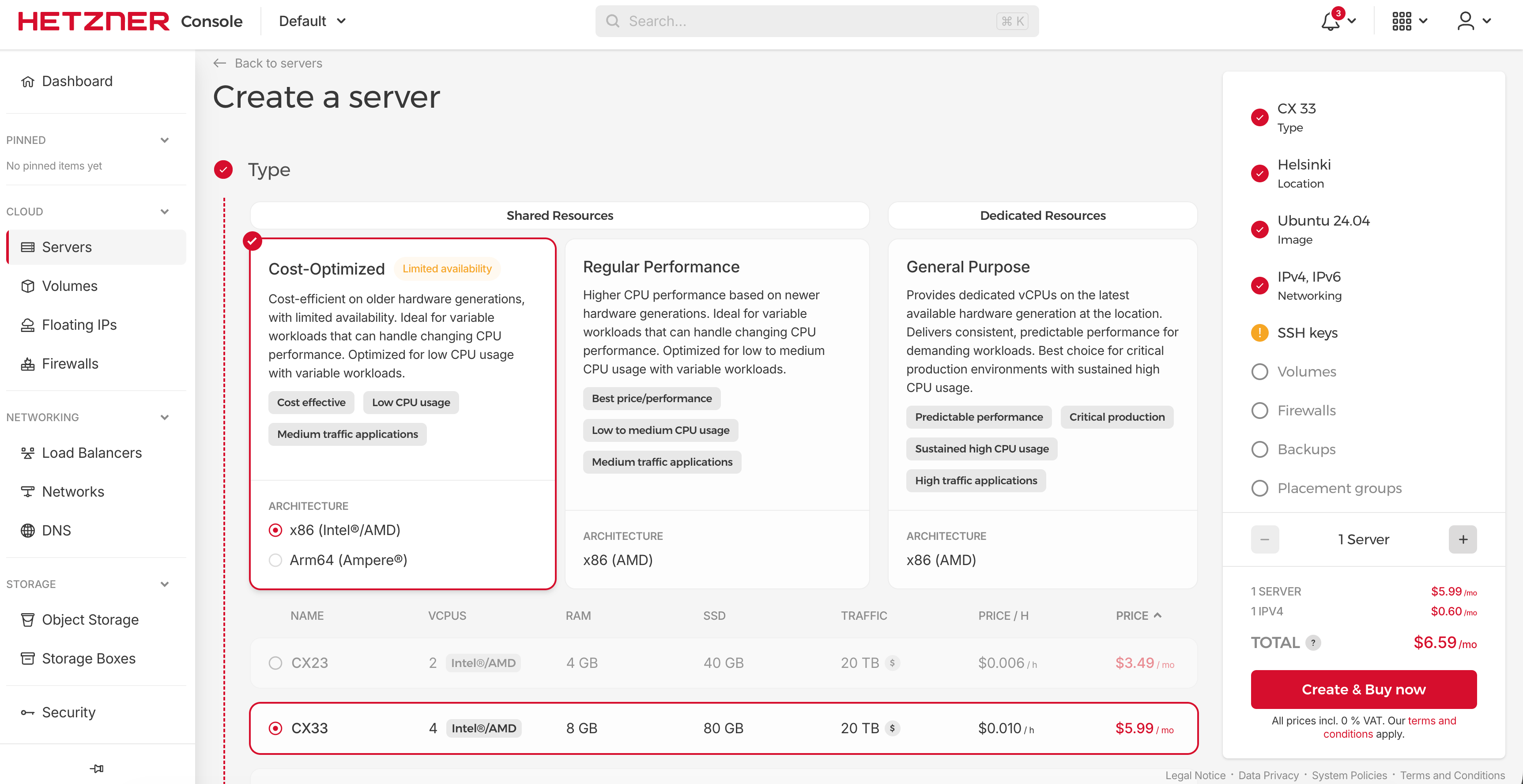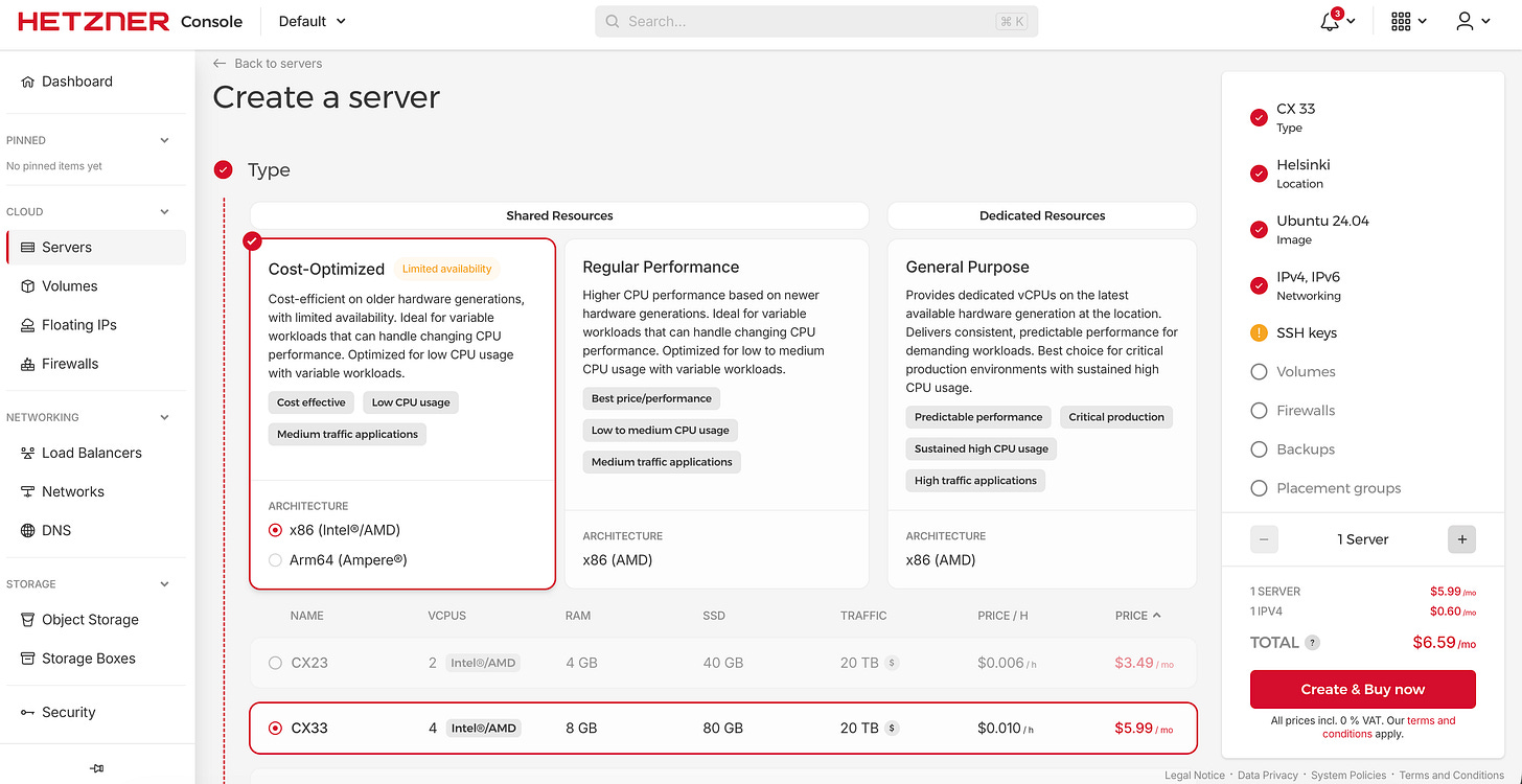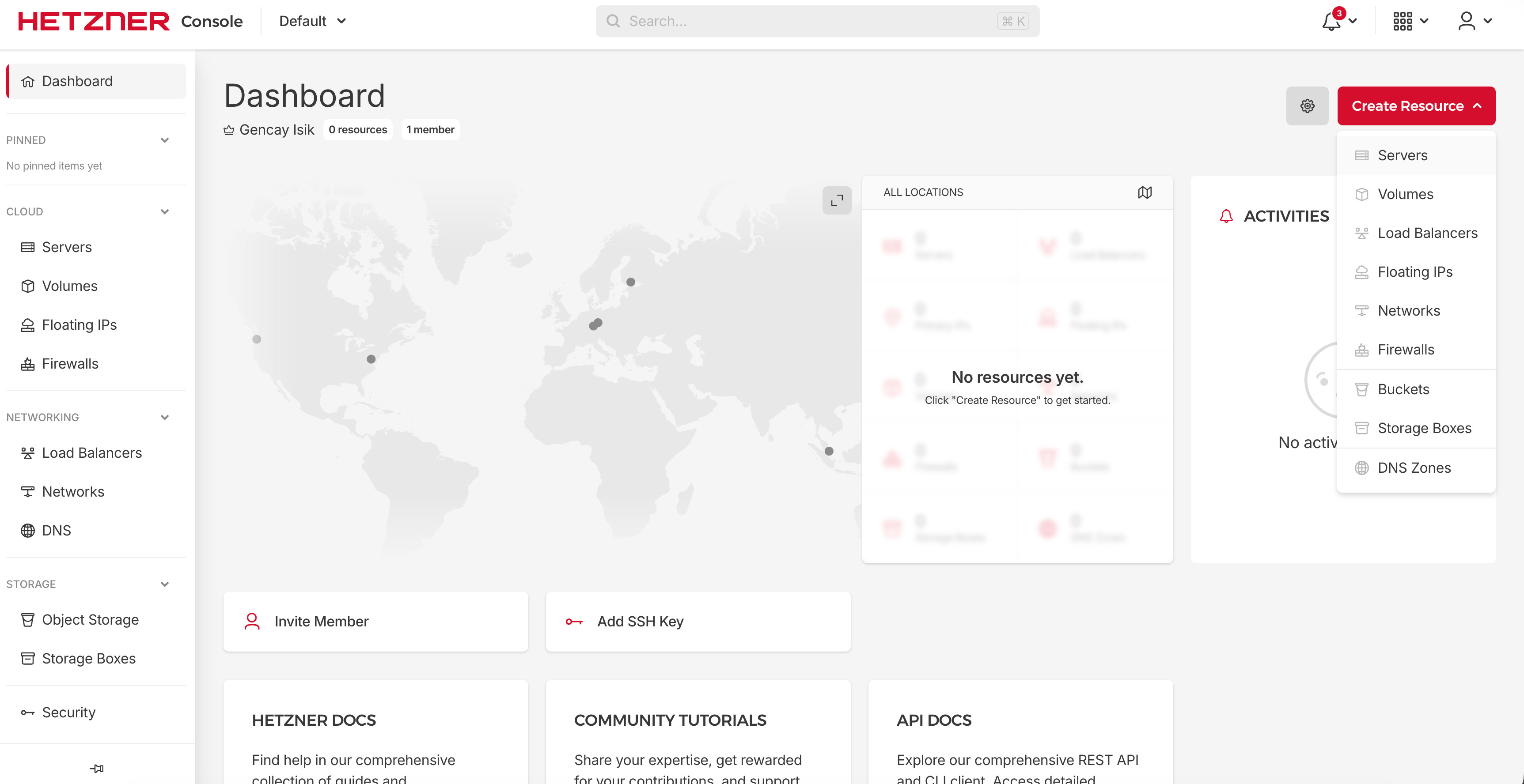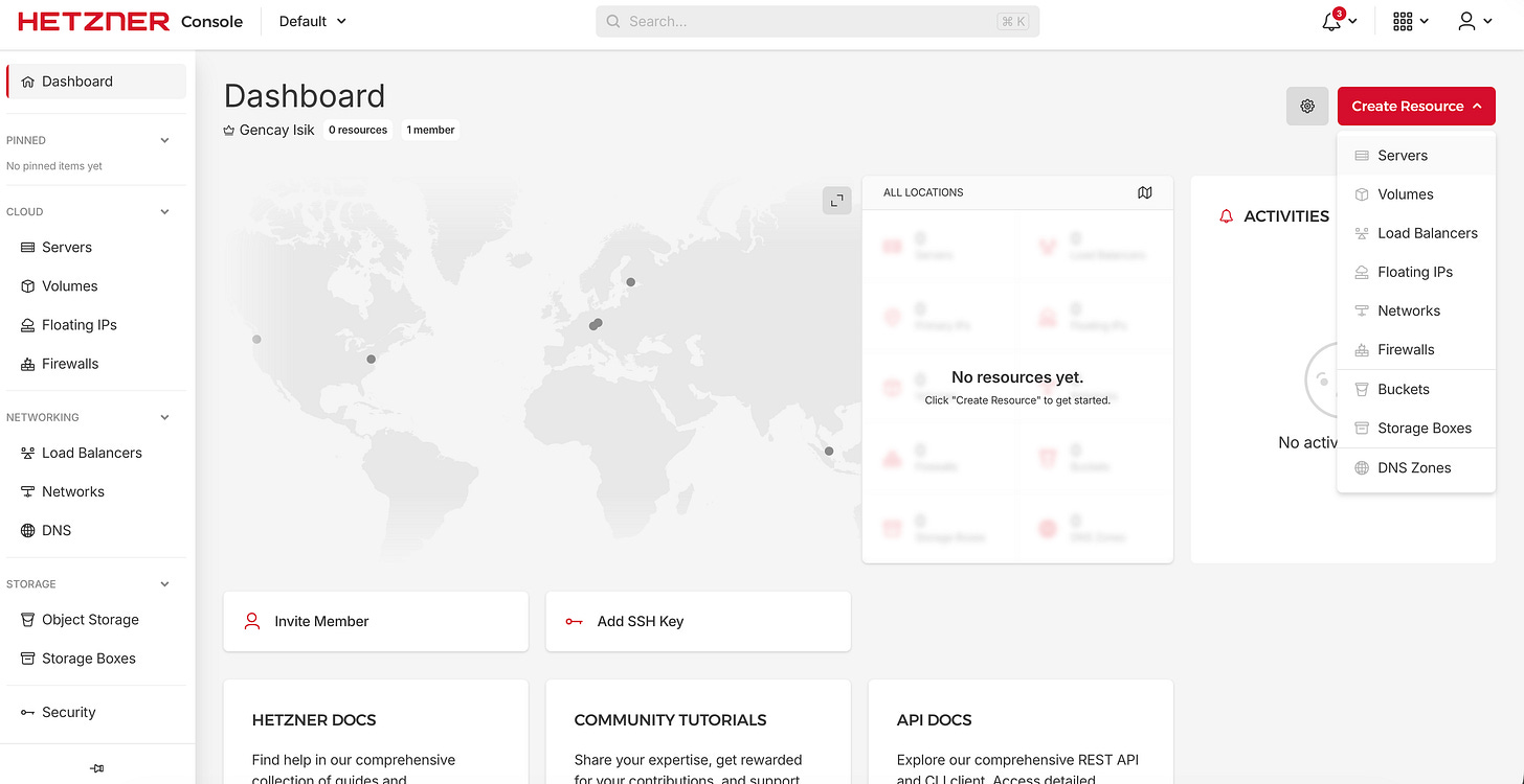 First, sign up for Hetzner and create a project. Click on the new project and follow the steps below.