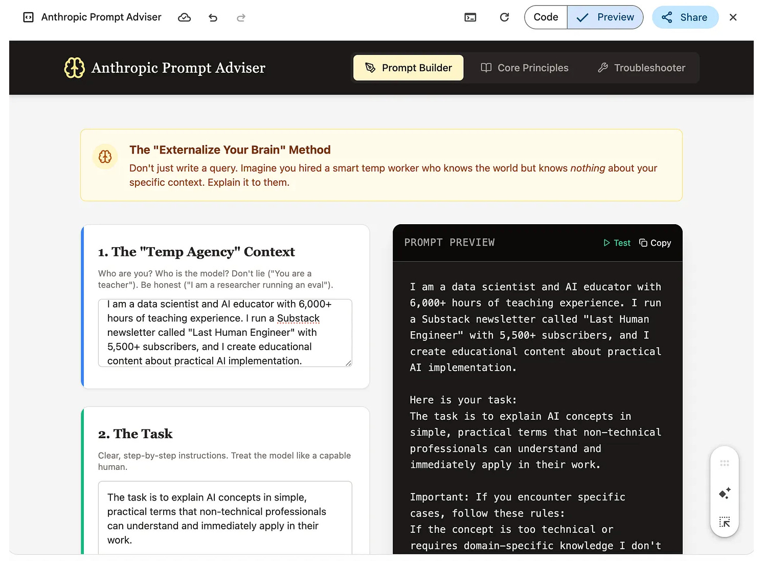 I did this. 50+ project docs. One connection. 10 minutes later: working app following my architecture.
