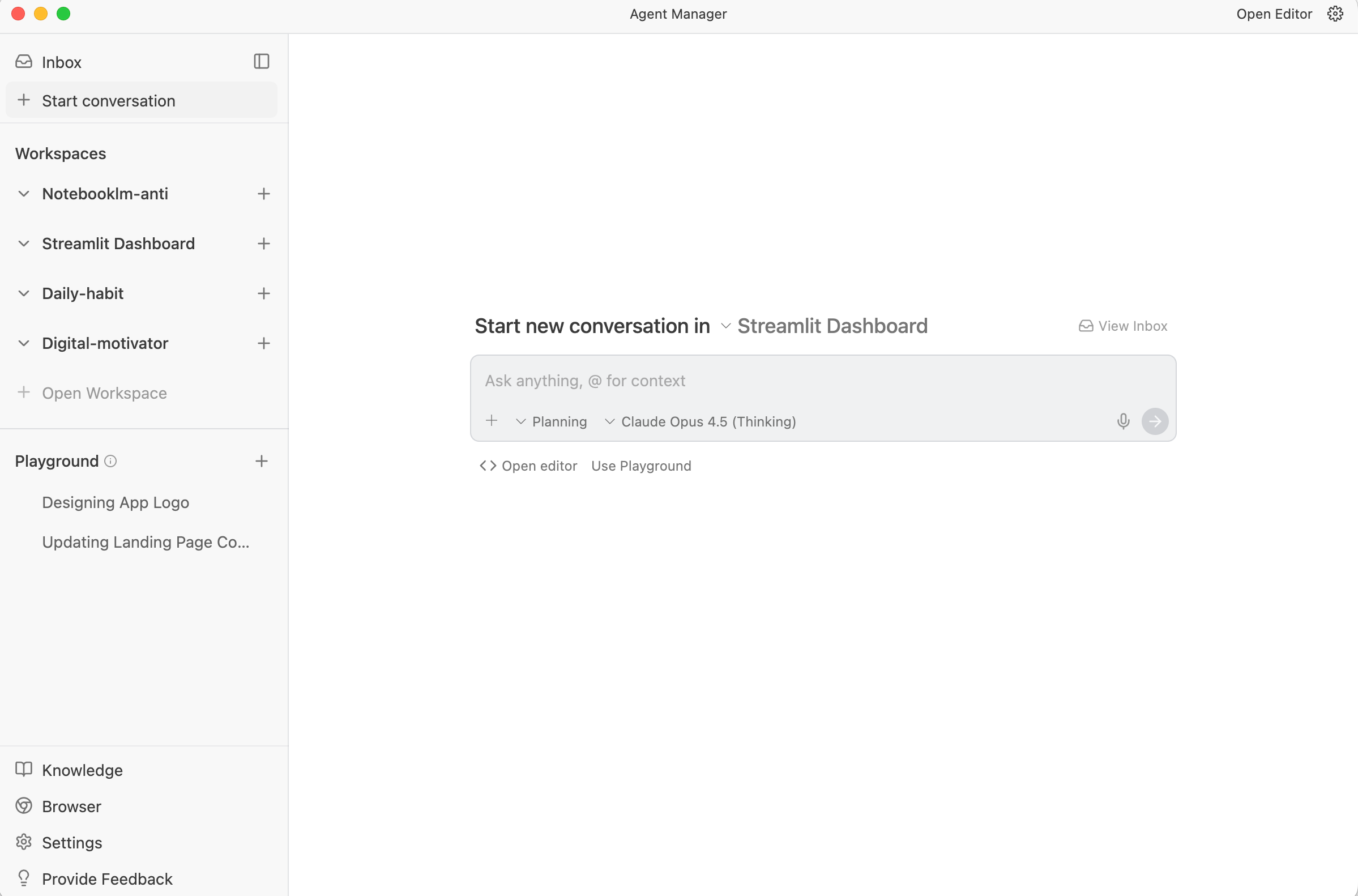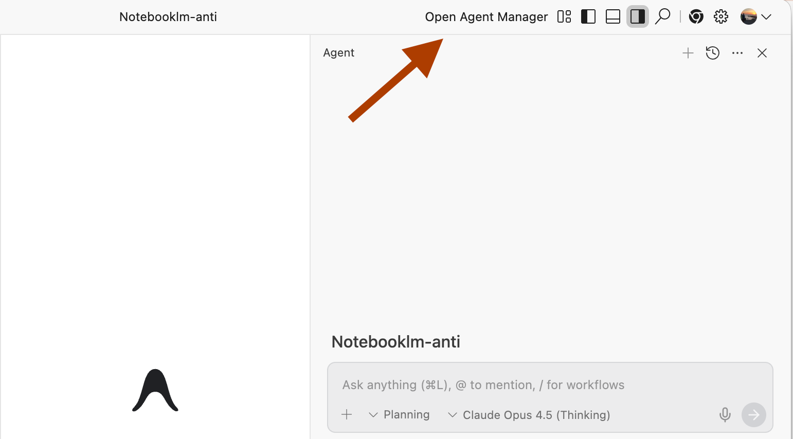 When you click on "Open Agent Manager”, as you can see in the ss below, a new window opens.