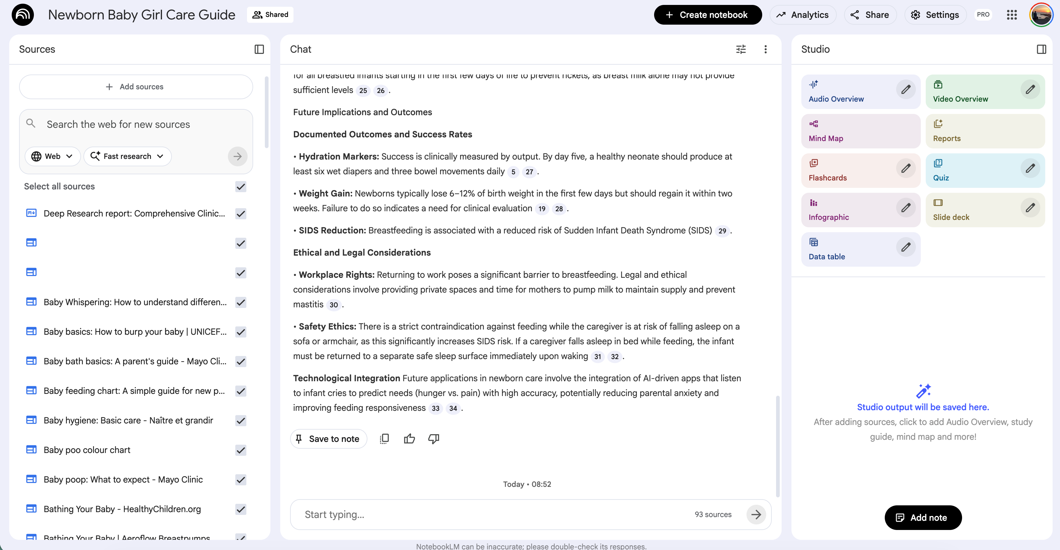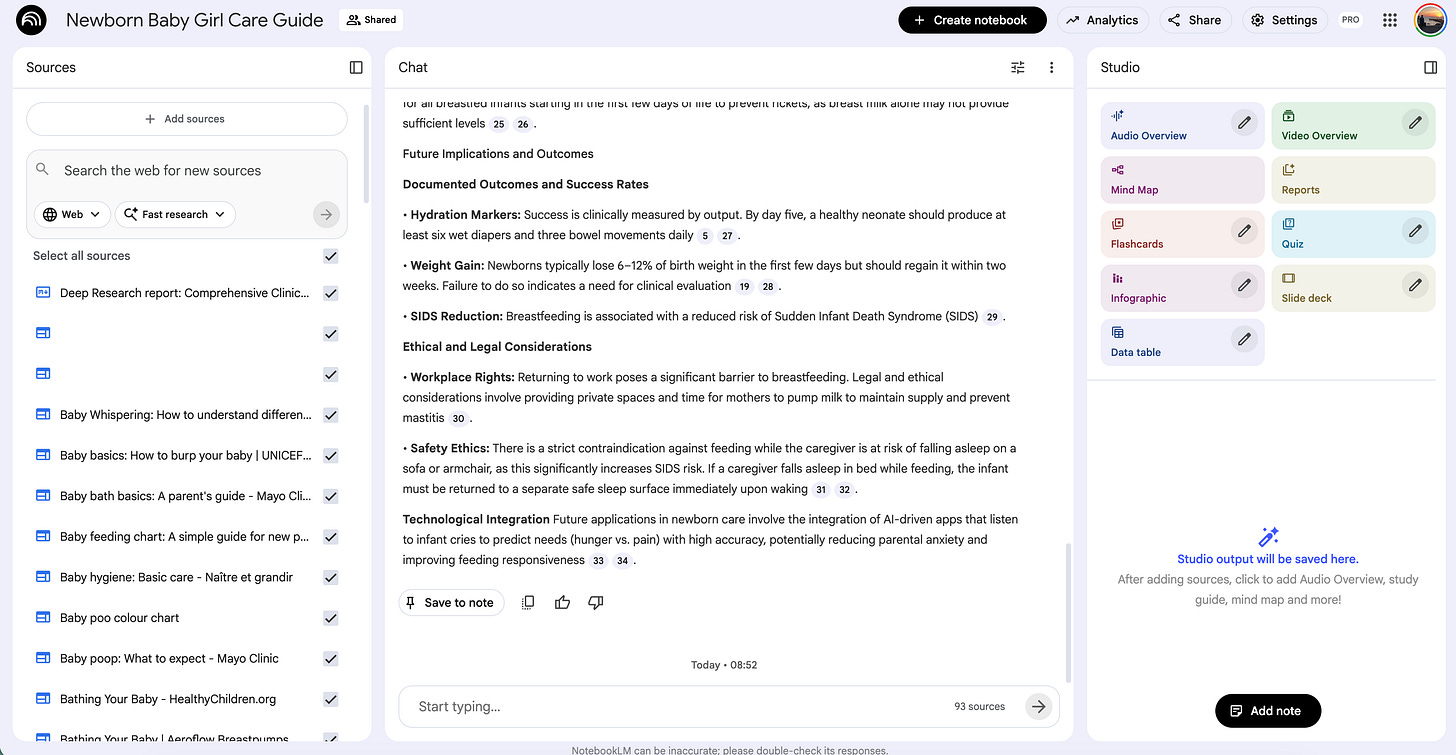 NotebookLM is, I think, one of Google’s best AI products. With it, you can do research, learn using quizzes, video or audio summaries, and create mind maps, infographics, data tables, or reports.