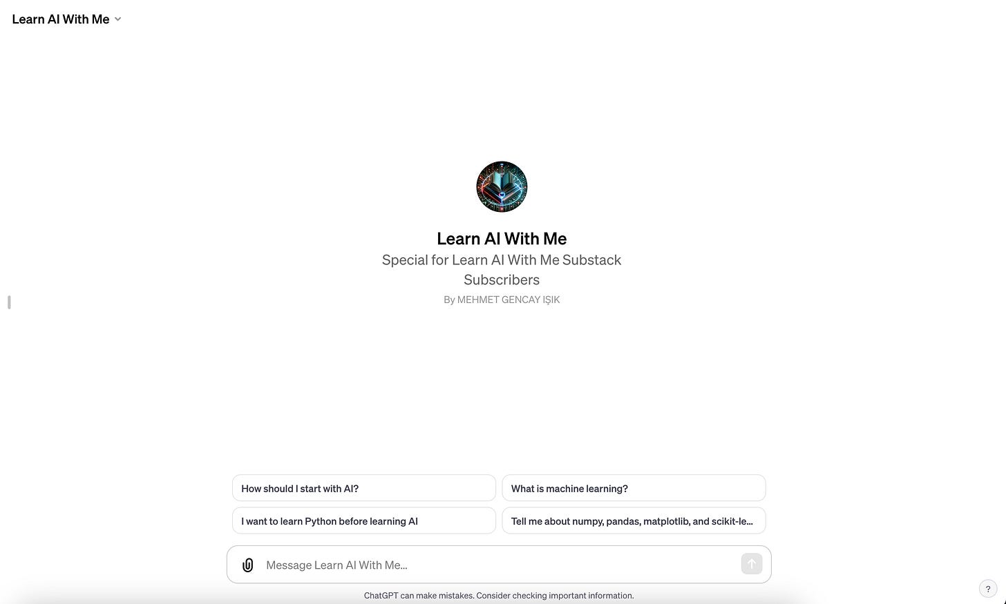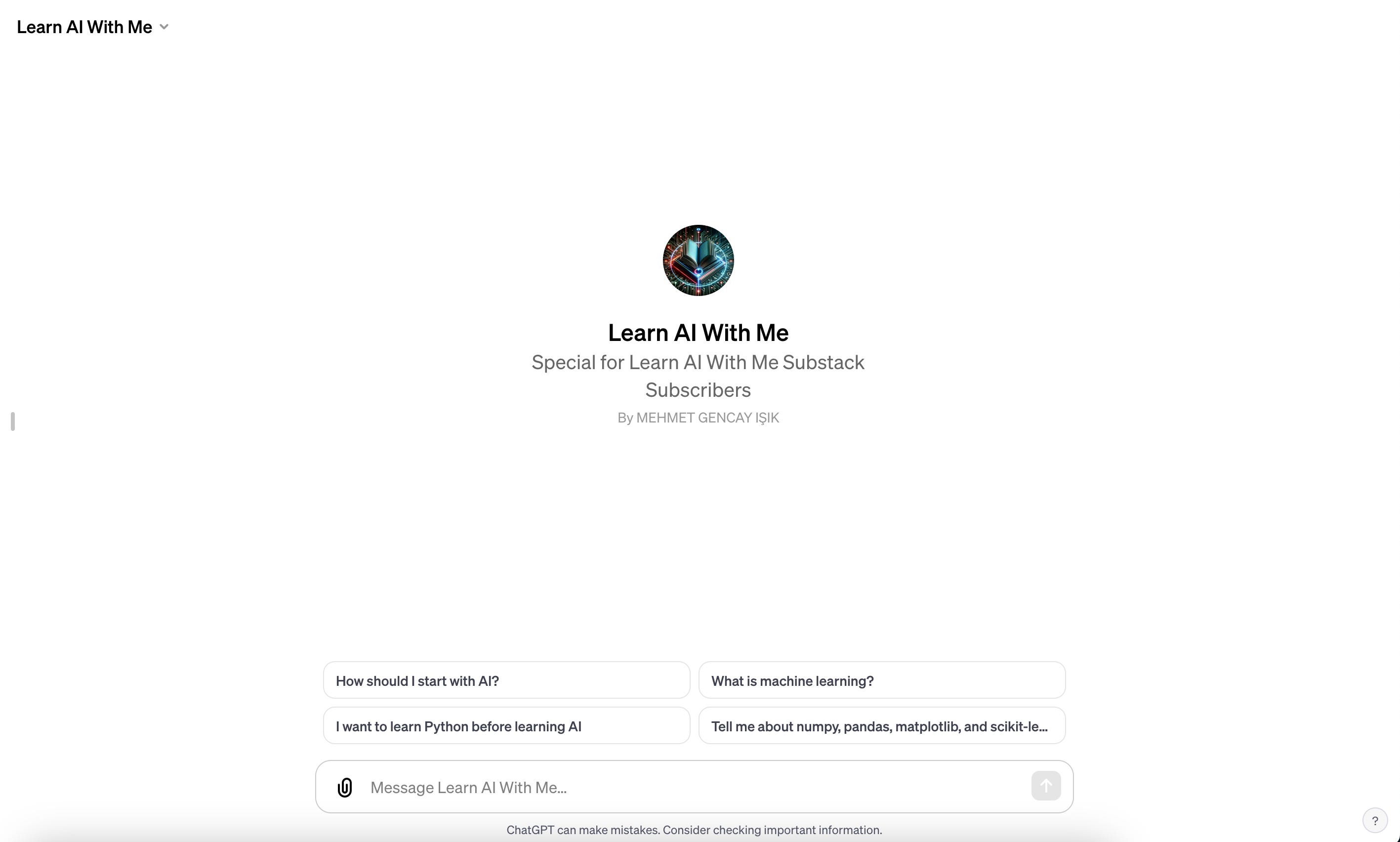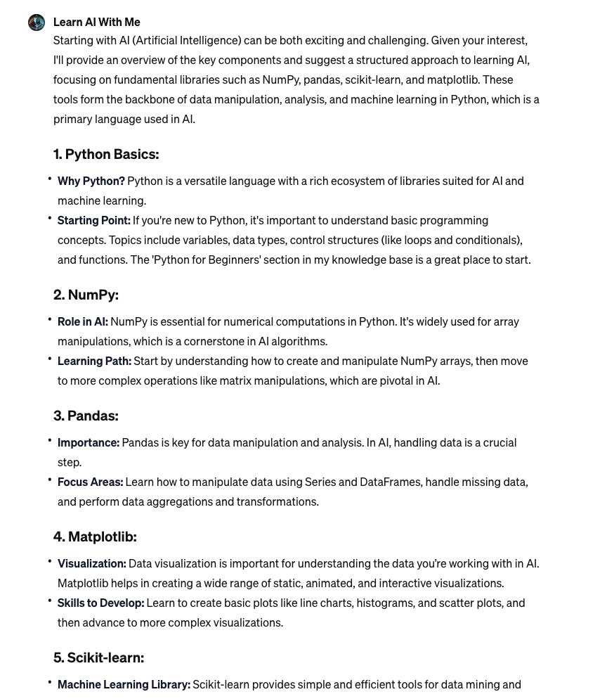 By using this GPT, you can learn Python libraries such as matplotlib, numpy, pandas, and scikit-learn to build AI applications. This curriculum, which I personally created by combining various resources, is regularly updating.