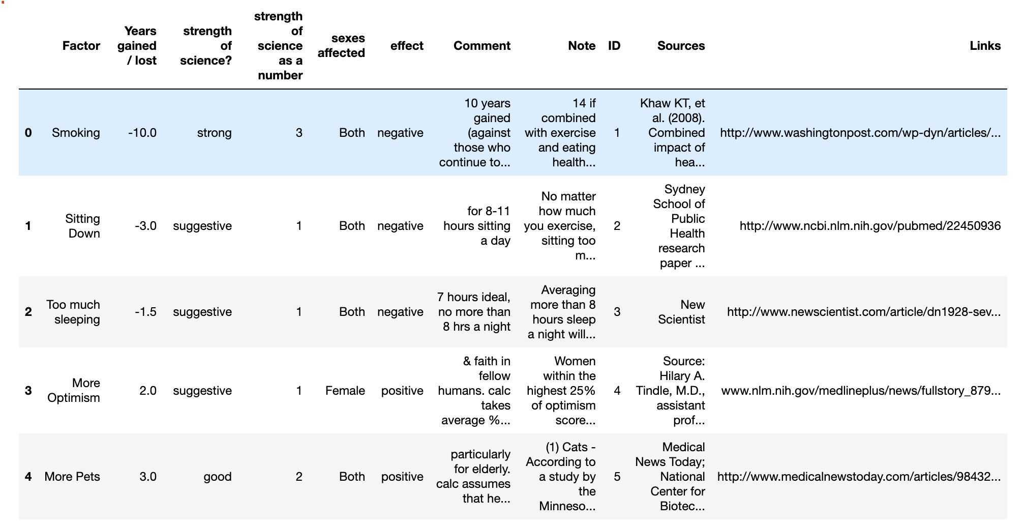 This graph should have effect on the decisions we made, right? Because as you can see habits like smoking and alcohol (heavy) use have negative effect on us, on the other hand meditation or having pet have really positive effect about extending our lives.
