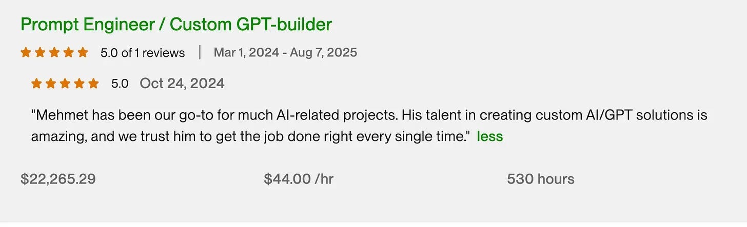 Prompts: With over 500+ hours of prompt engineering experience, I've developed specialized prompts and custom GPTs for clients across Europe.