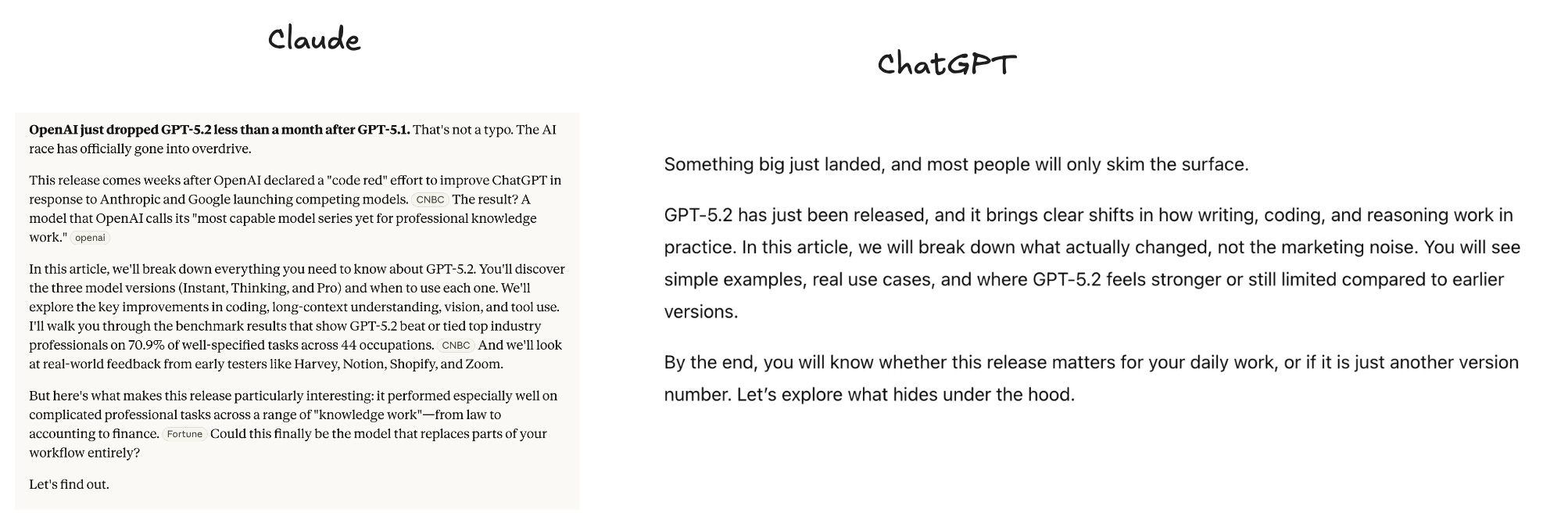 Both delivered. But Claude went deeper. More detail.