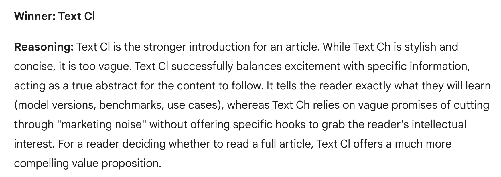 [PASTE TEXT B HERE]Compare these two texts only in terms of writing quality. Evaluate clarity, tone, structure, flow, and readability for a general audience. Explain the strengths and weaknesses of each text. Then conclude which text is stronger overall and why. Focus purely on writing, not on factual accuracy or technical depth.