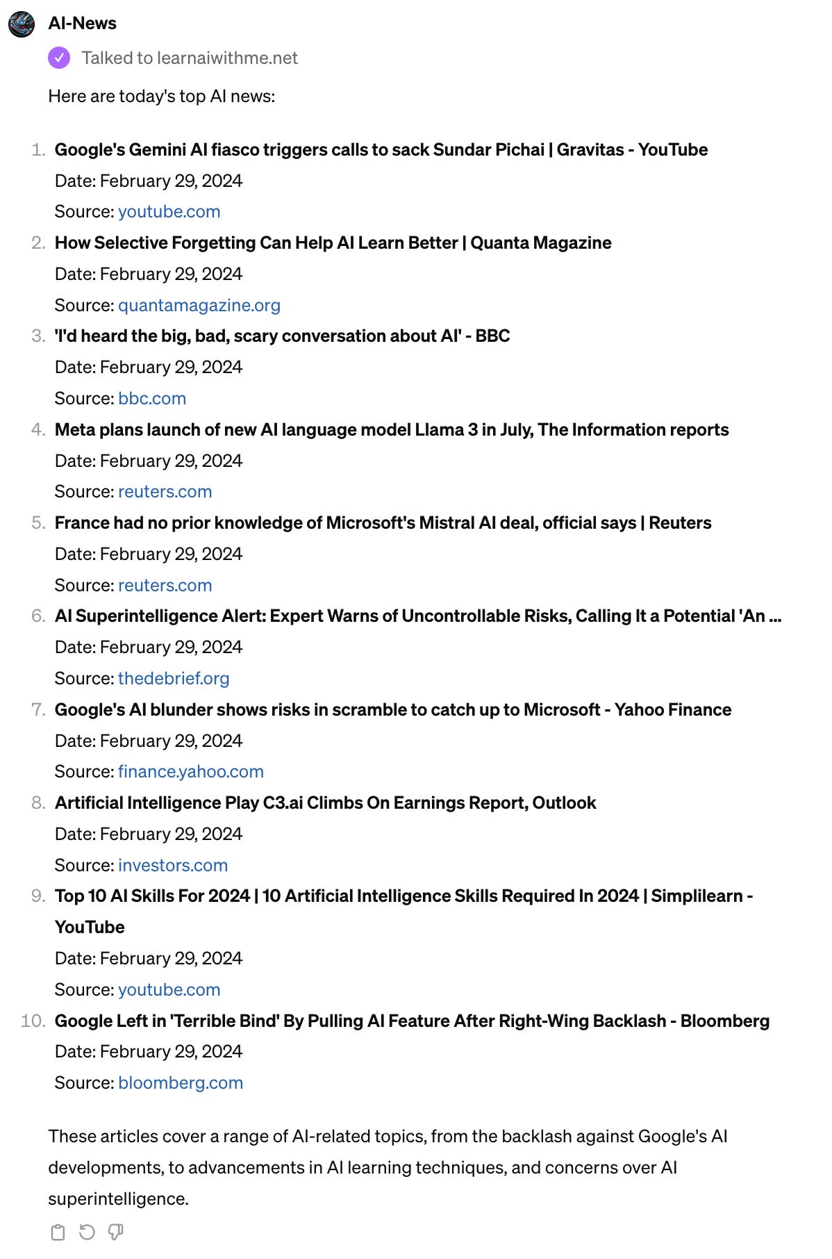 Fetch me today's AI NewsLet’s see the output.