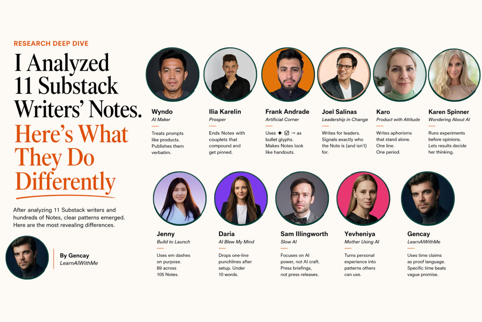 I extracted every Note from 11 top AI Substack writers and reverse-engineered their patterns. Here's the DNA behind each voice, plus a Claude Artifact that writes in their style.