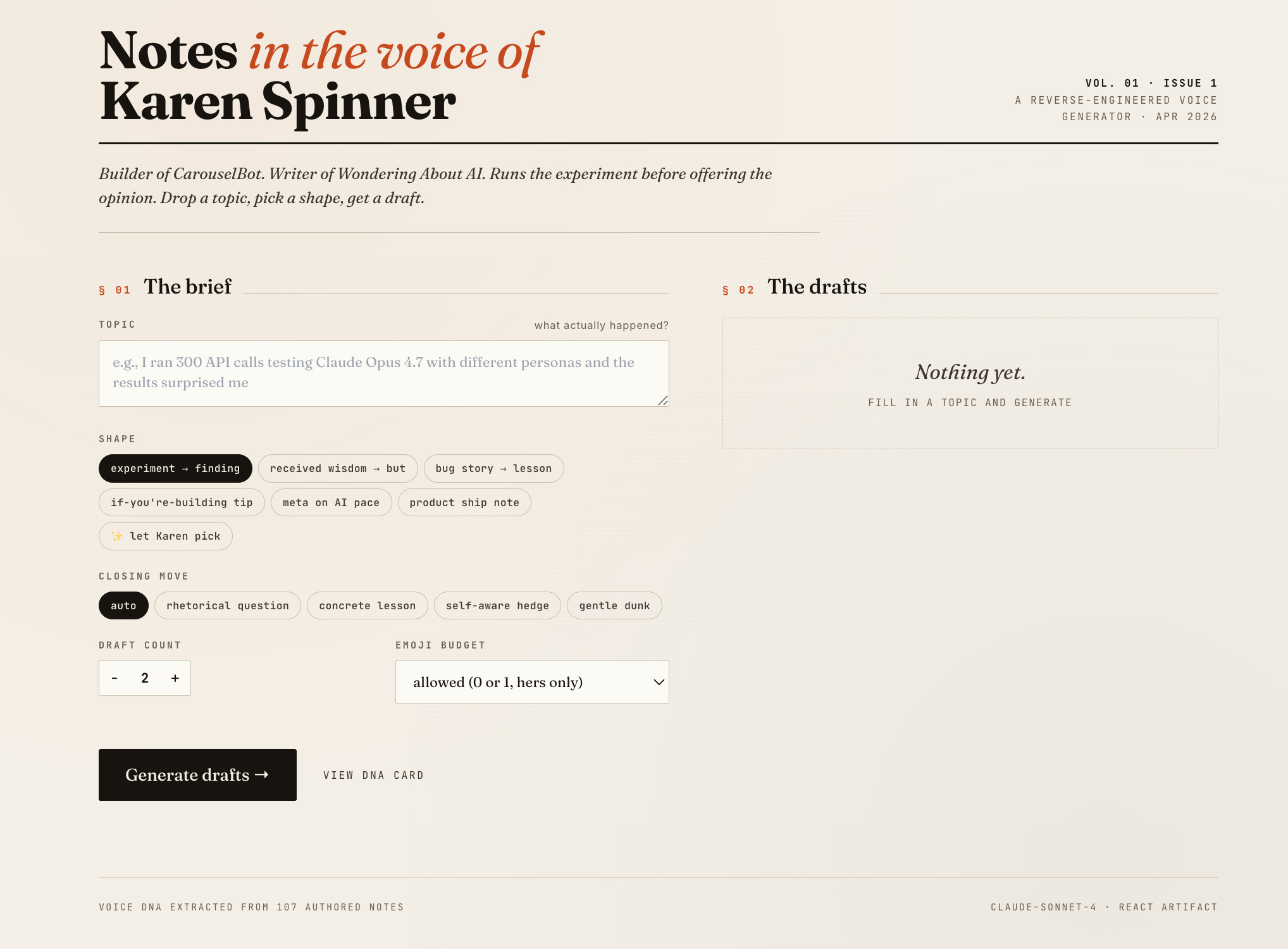 I built eleven Claude Artifacts for this article. One per writer. You can try any of them.