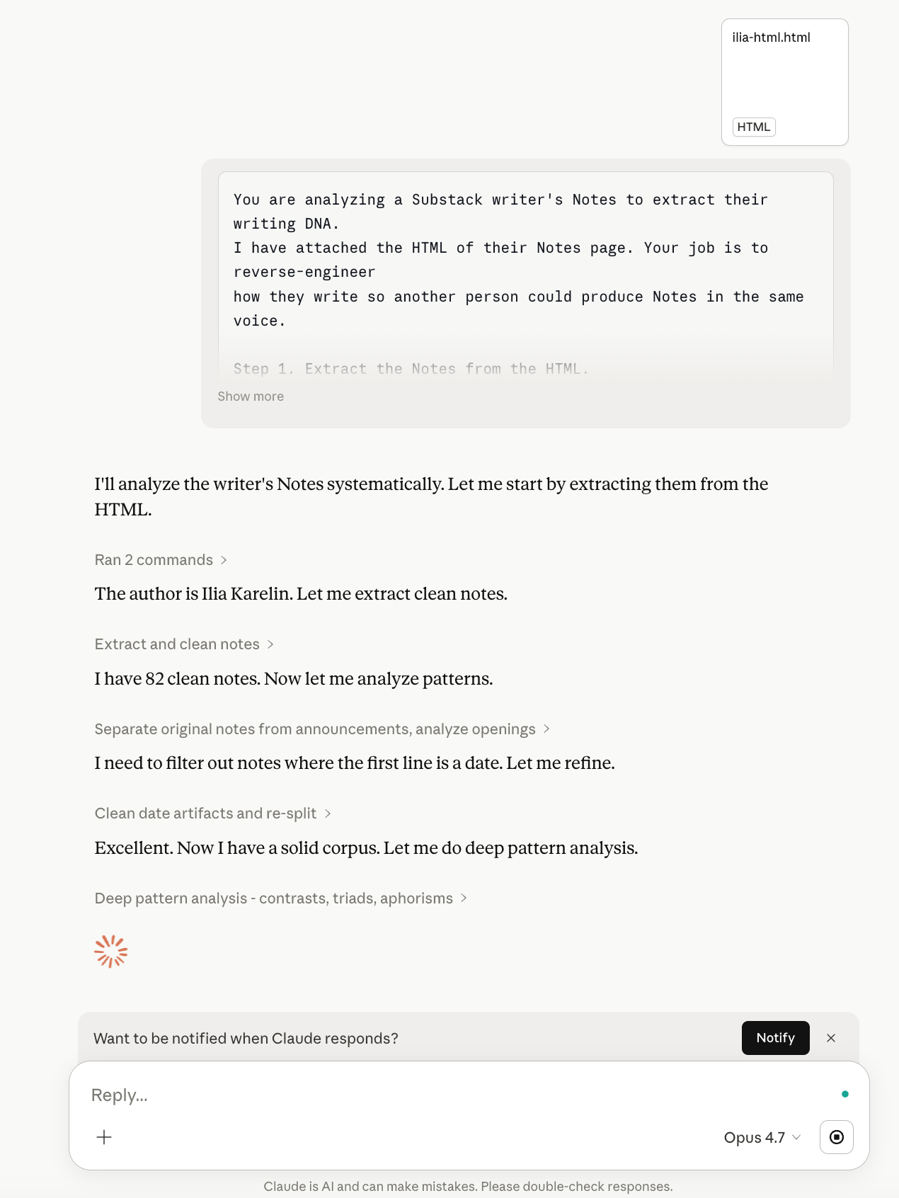 The kind where you open the HTML, extract every Note, and ask what makes this person’s Notes recognizably theirs.