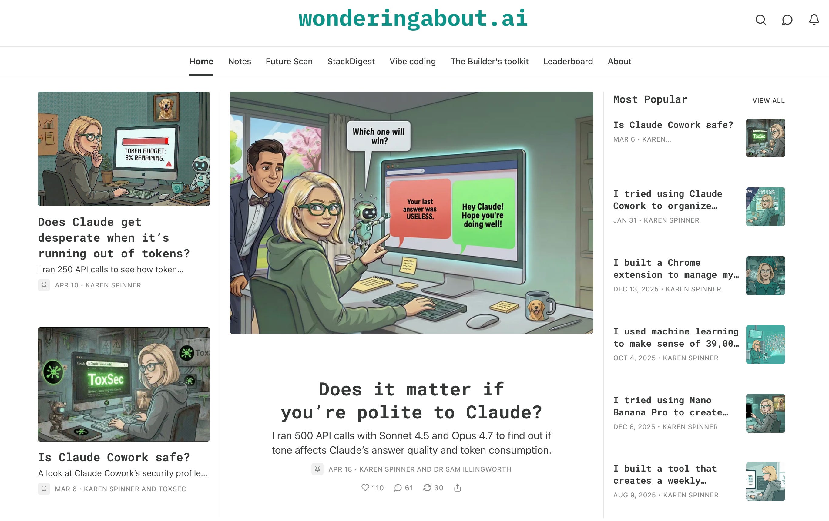 None of them are “AI generalists.” Every writer occupies a specific territory, and everything outside that territory goes into their articles or gets skipped entirely.