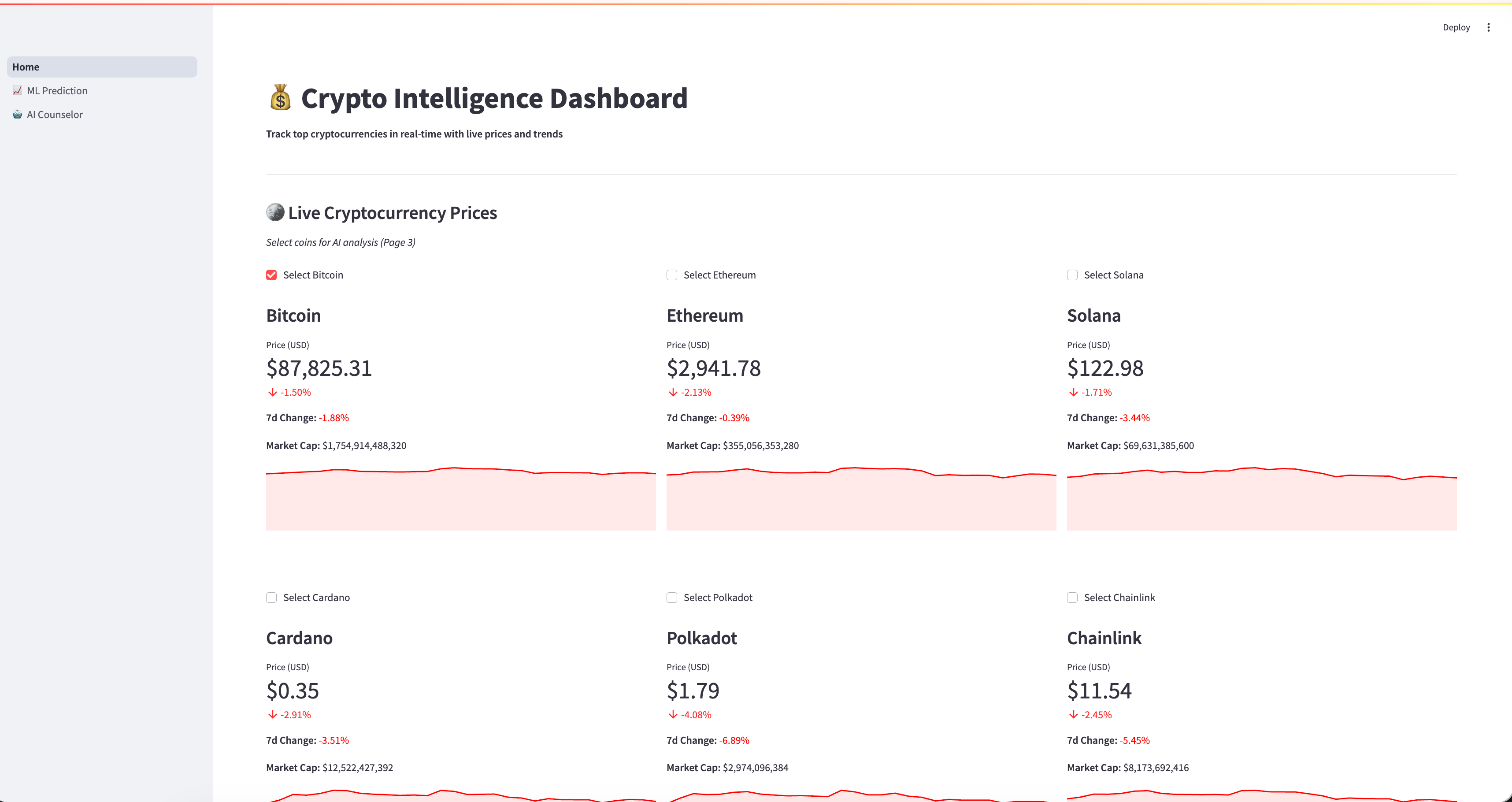 We’re building a multi-page Streamlit dashboard with 3 sections: