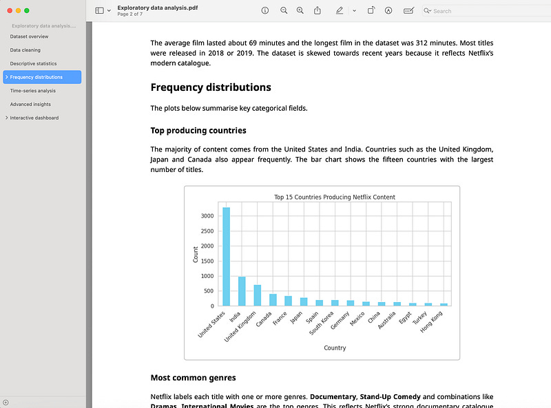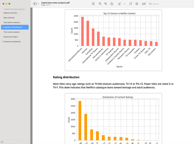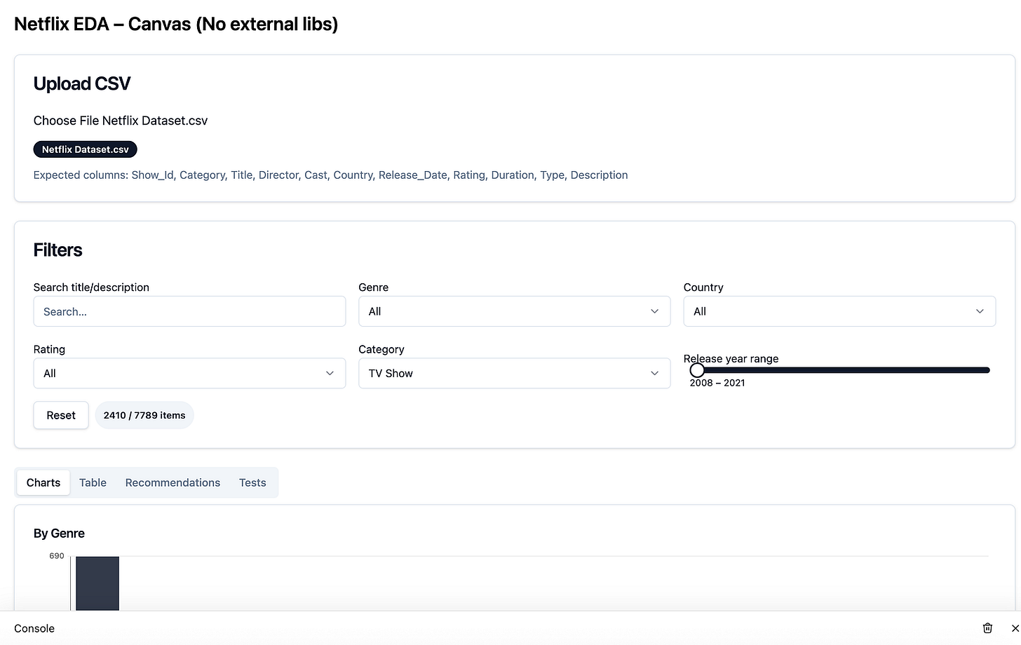 I have attached a dataset named Netflix Dataset.csv. Please perform a comprehensive exploratory data analysis (EDA) using GPT-5’s Agent Mode capabilities.
