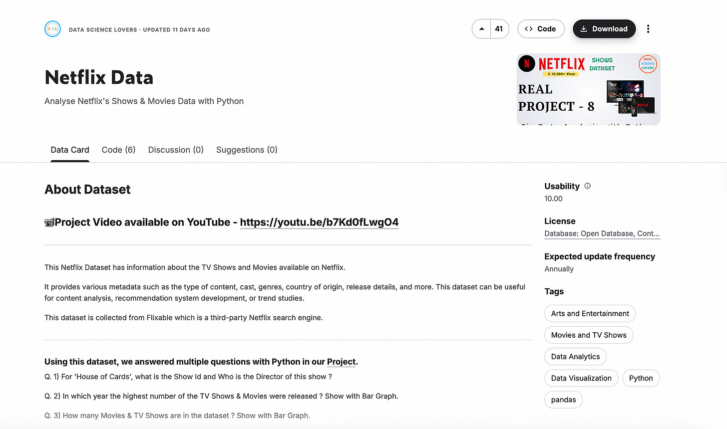 We will use Netflix data from Kaggle. Here is the link to this dataset. It includes Netflix Data.