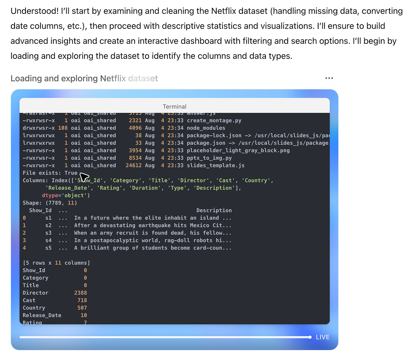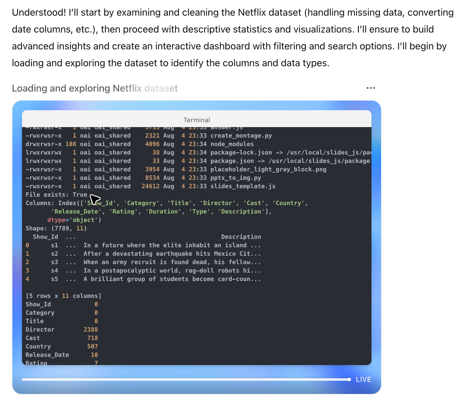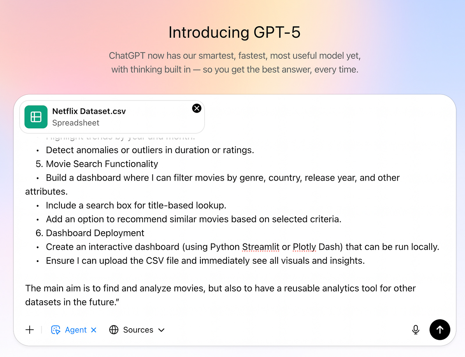 Automating Data Science with ChatGPT-5's Agentic Mode for Netflix Dataset Insights