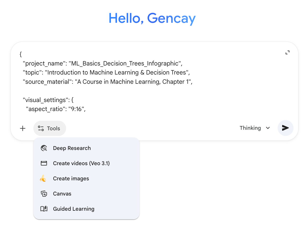 In this step, open a new chat and paste the prompt that you copied, which was produced by Gemini in step 1.
