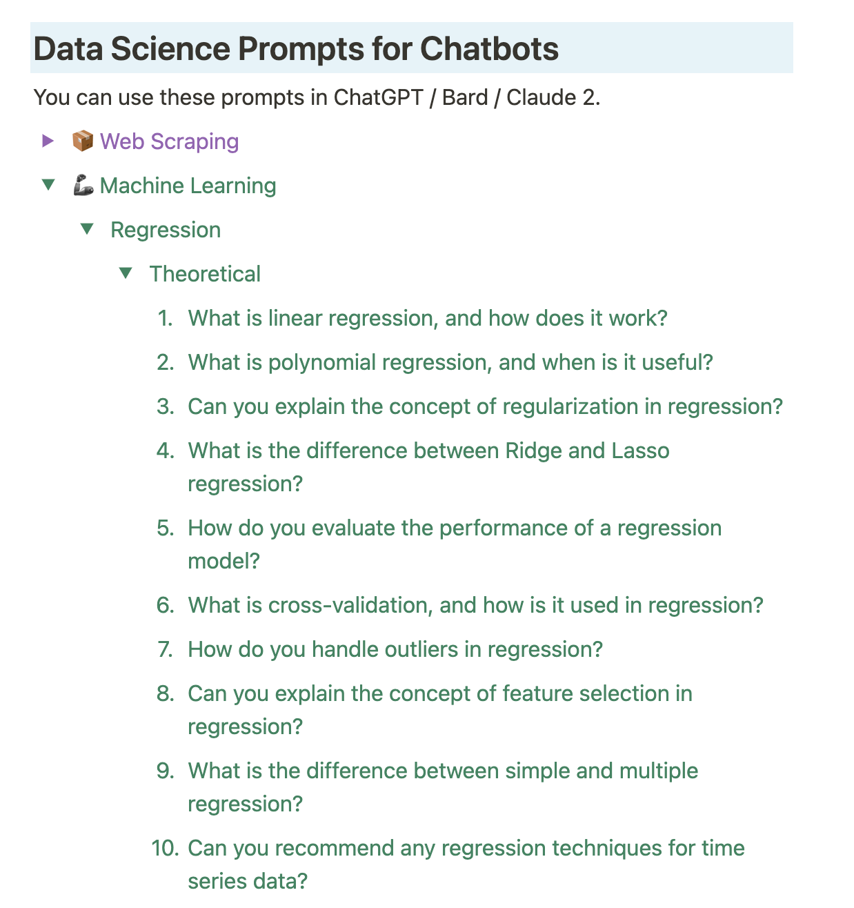 You can learn all of them by just using the right prompts first, and doing exercises about them by using Python.
