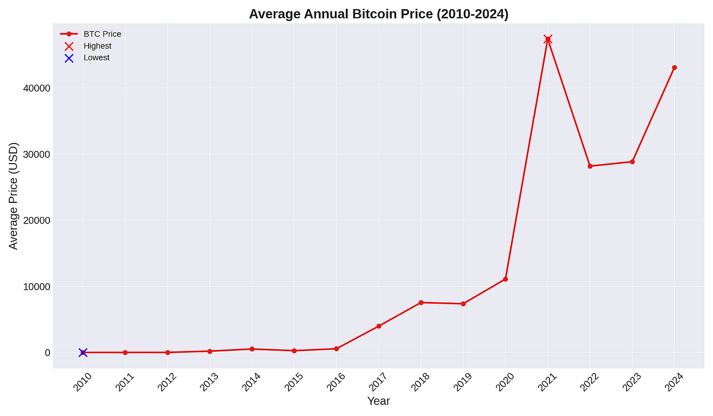 Trending Upward: The closing price is increasing over this period, from $42,697.2 to $47,545.4.