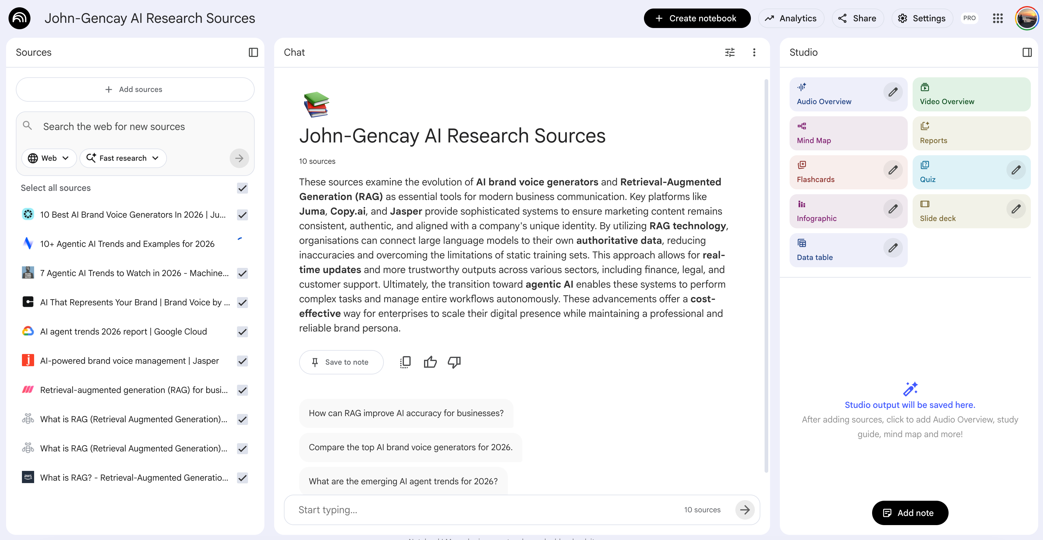 Agent 2: Identifies research topics and creates a research NotebookLM