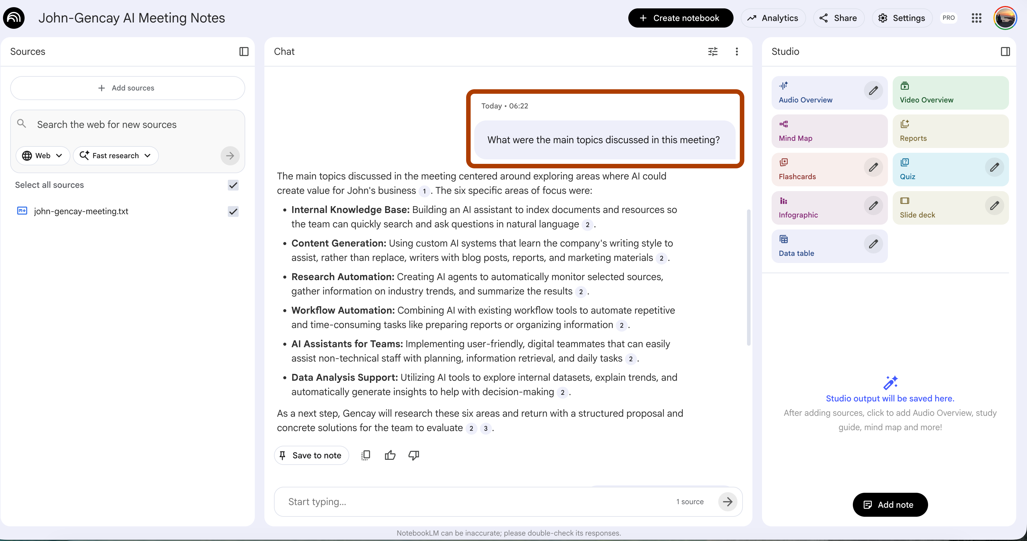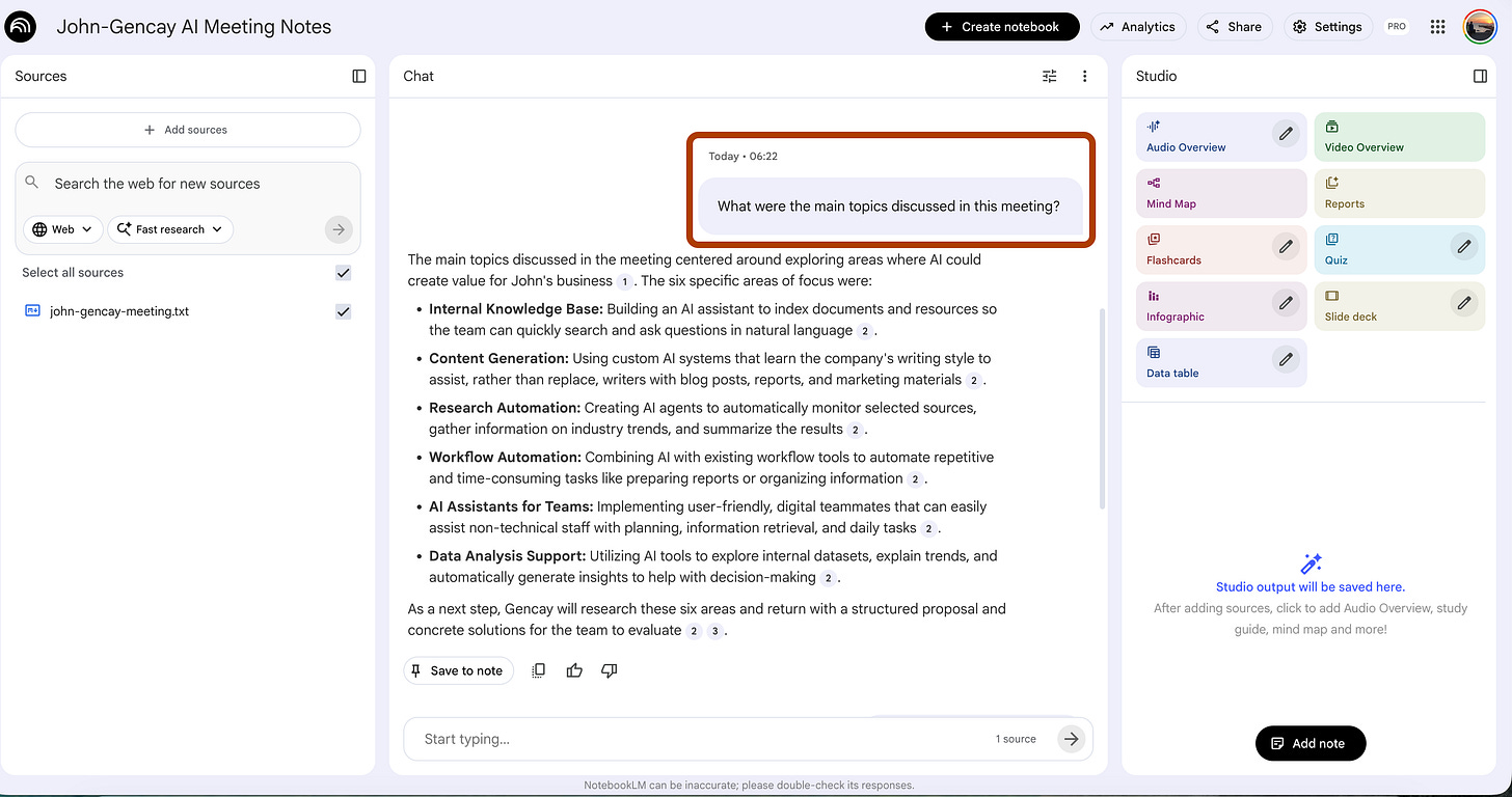 Agent 1: Trains a NotebookLM from meeting notes