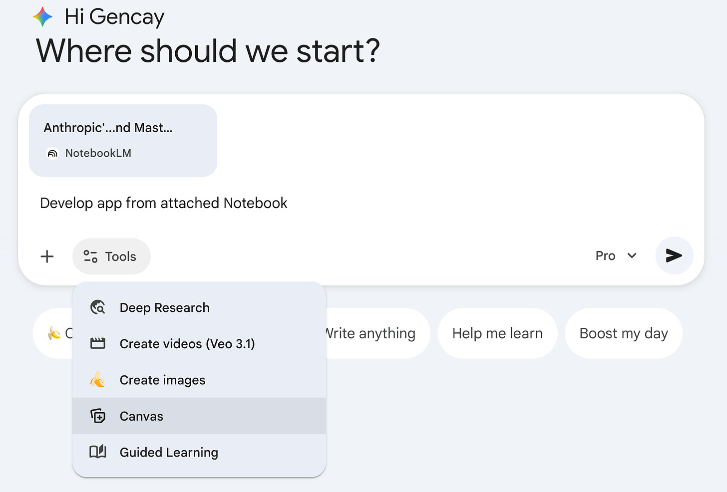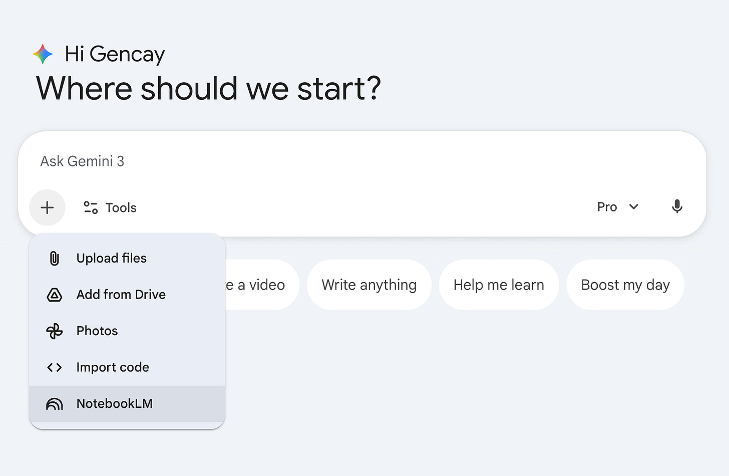 NotebookLM now connects directly to Gemini, allowing you to turn any notebook into a working AI app with one click. Upload a YouTube video, PDF, or document to NotebookLM.