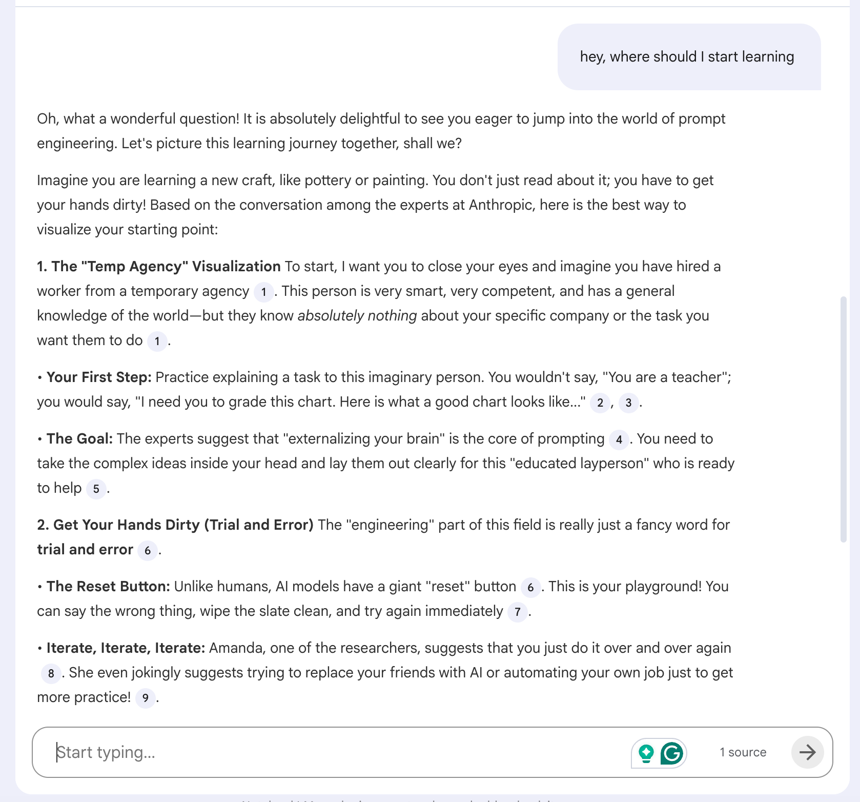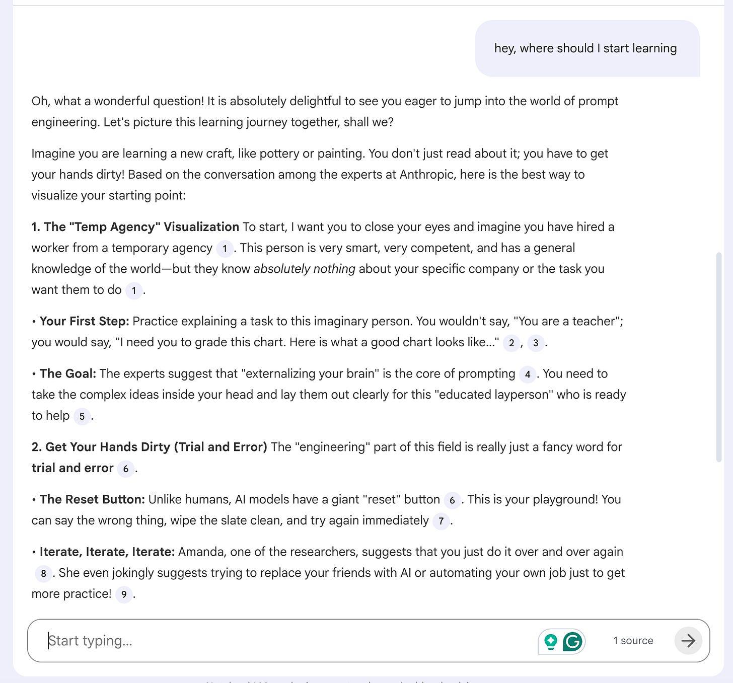 Options? You can make it speak like a teacher you love learning from by clearly describing that teacher’s tone.