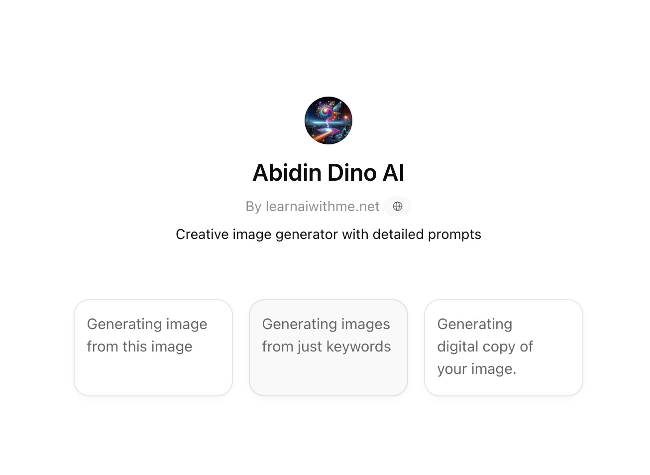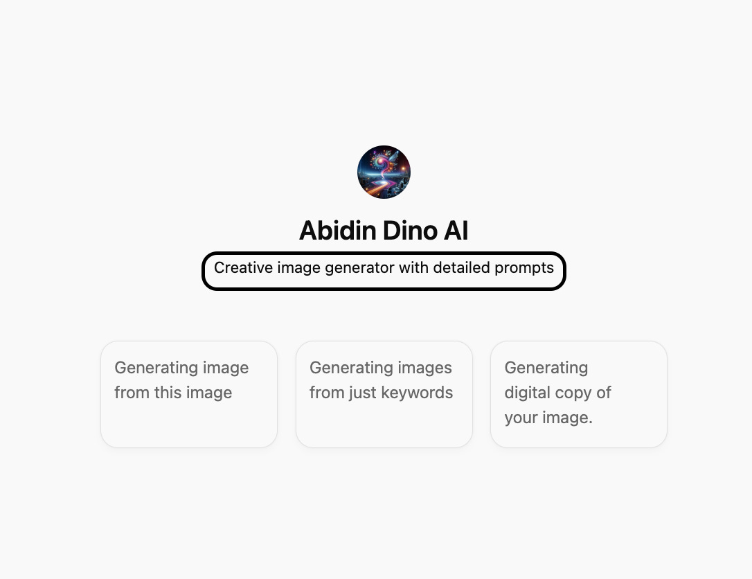 Now I explain what I want to the Abidin Dino AI, and it wants me to write three keywords.