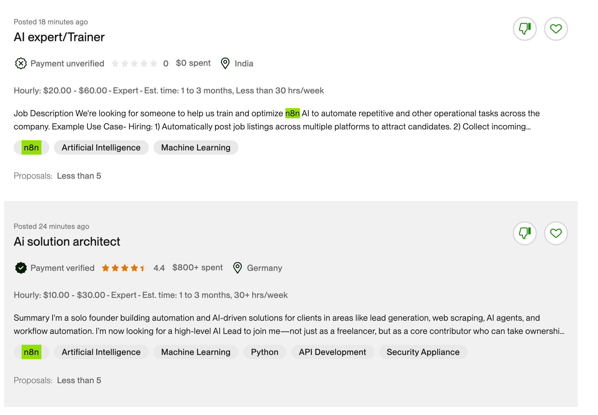 Now, let’s see how n8n jobs are rising this month, and we will solve one of these jobs in this one.