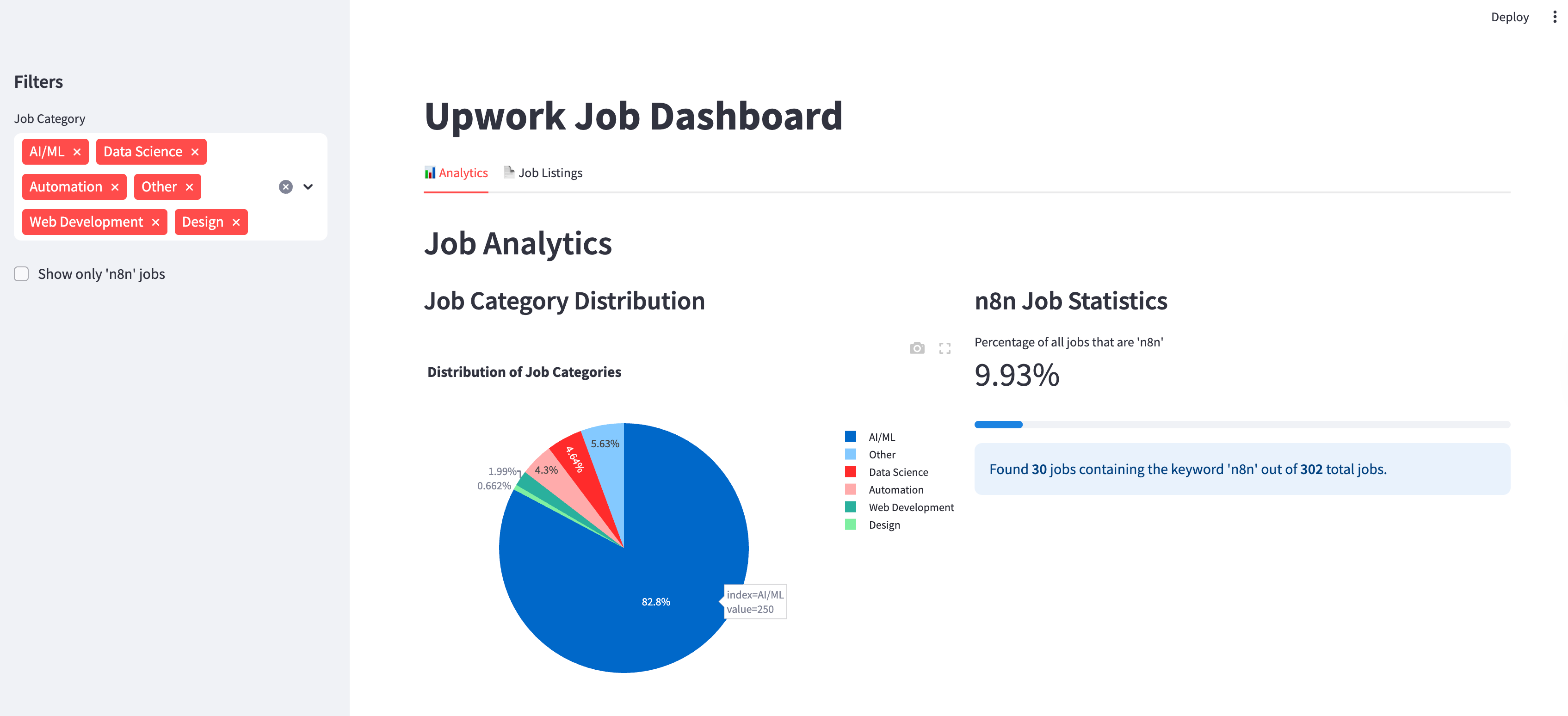 I've noticed an increase in n8n jobs on Upwork recently. To track the trend, I enabled job alerts in July, saved the data, and created a simple dashboard.
