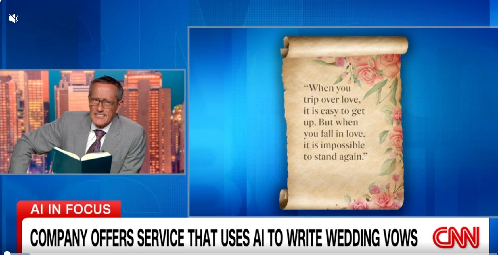 CNN featured Jen Glantz, founder of Bridesmaid for Hire, who advocates for using AI to help couples write wedding vows and speeches. She argues that not everyone is a skilled writer, and AI tools can write your vows for you.