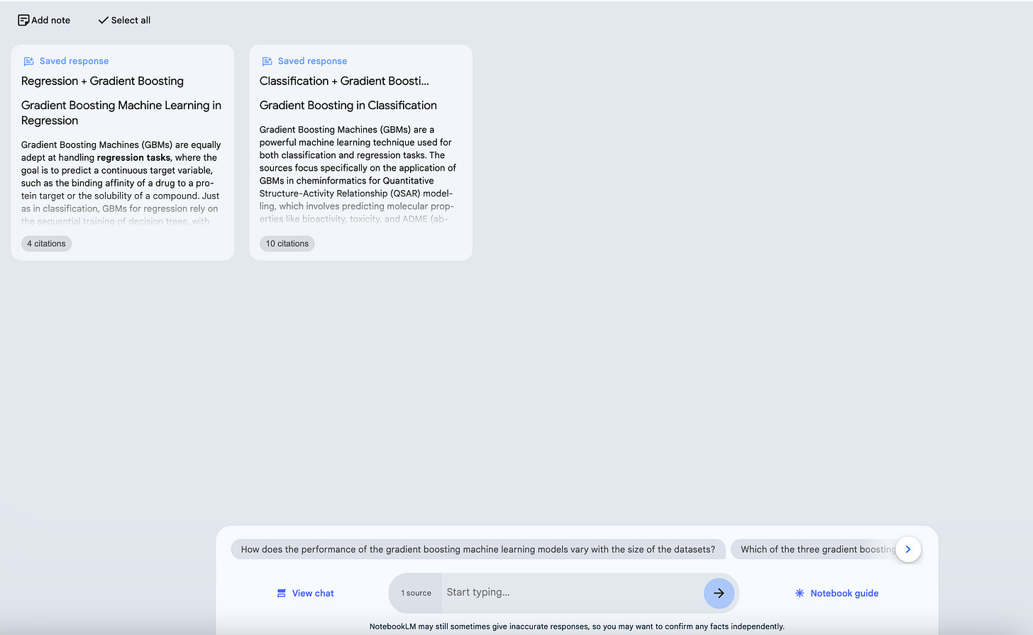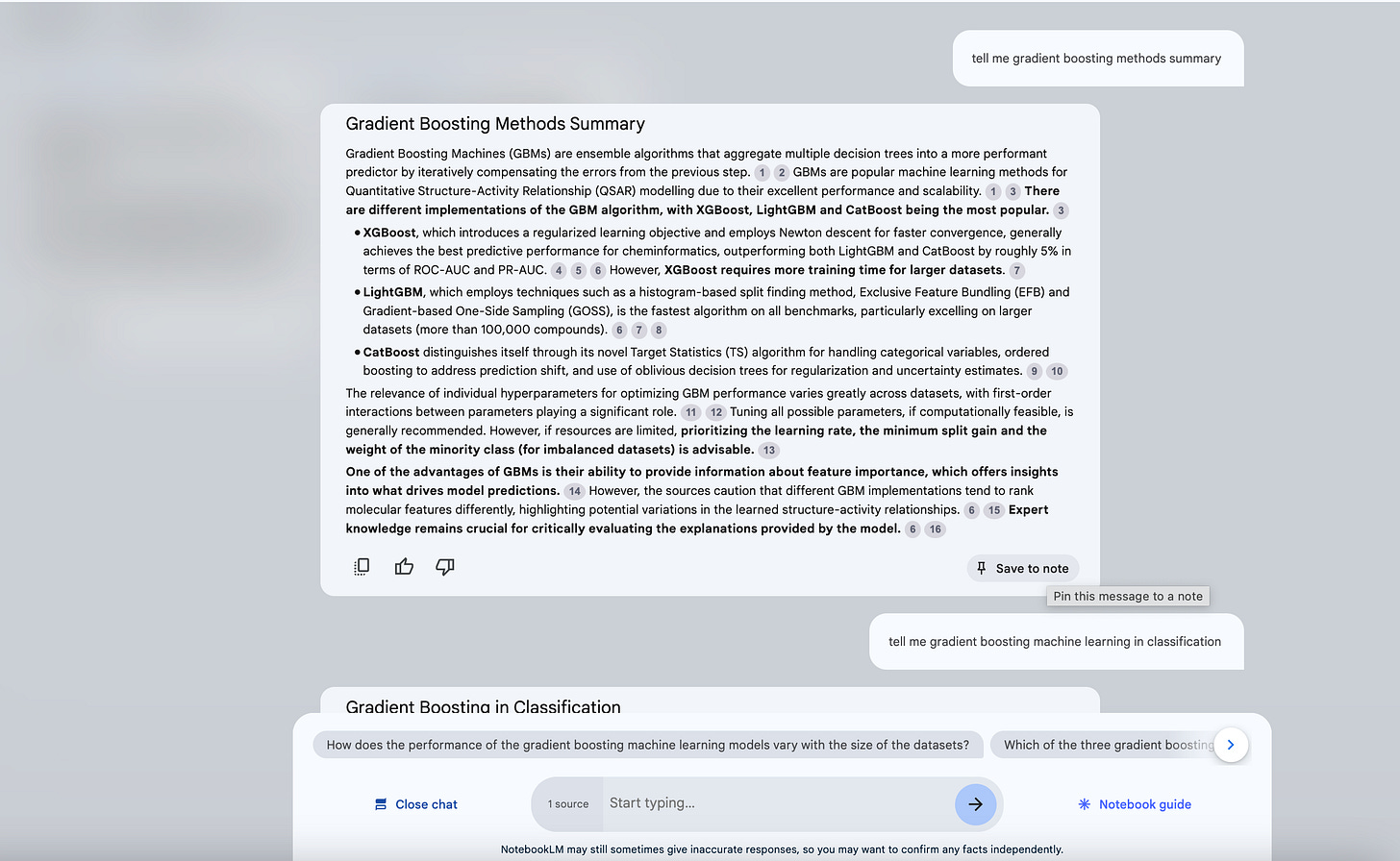 After clicking “Save to note”, this section of these conversations will be saved. And they can be seen at the start of this Notebook, check below;
