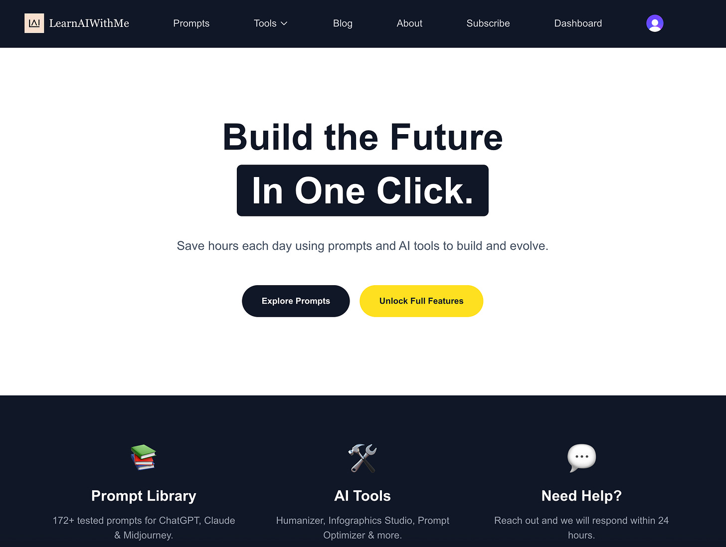 AI Humanizer, Infographic Studio, Prompt Optimizer powered by Claude, NanoBanana Pro, and ChatGPT APIs.